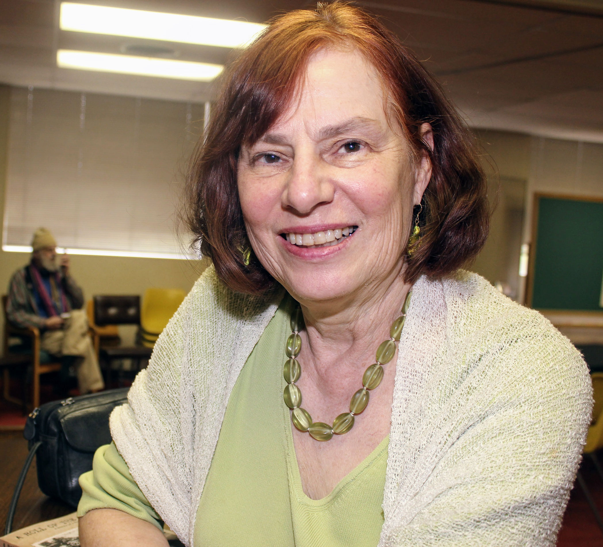 Downstairs in the Vestry Room, Agnes signs copies of her book.