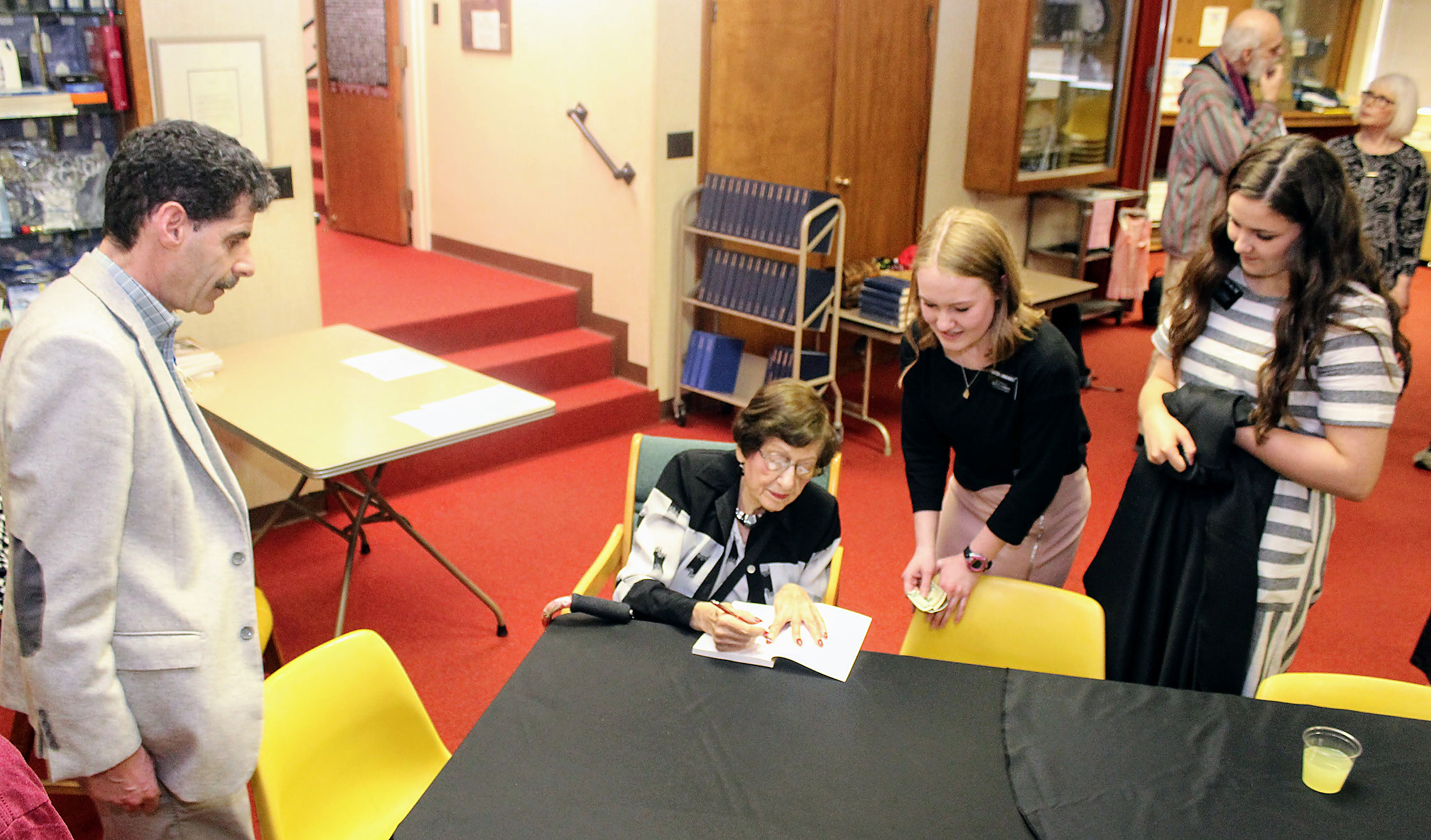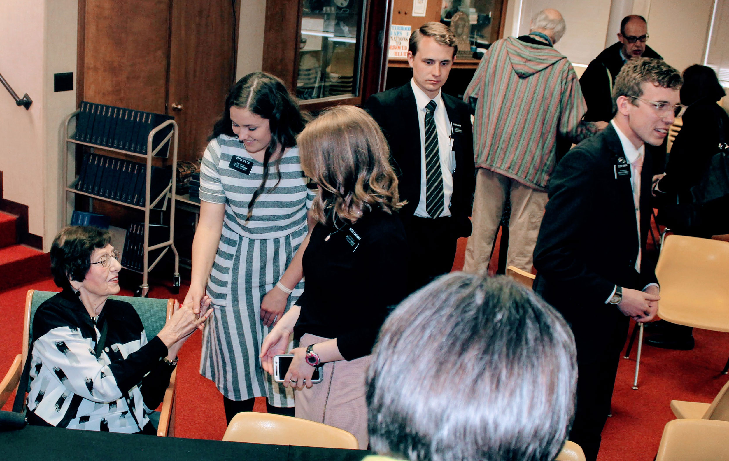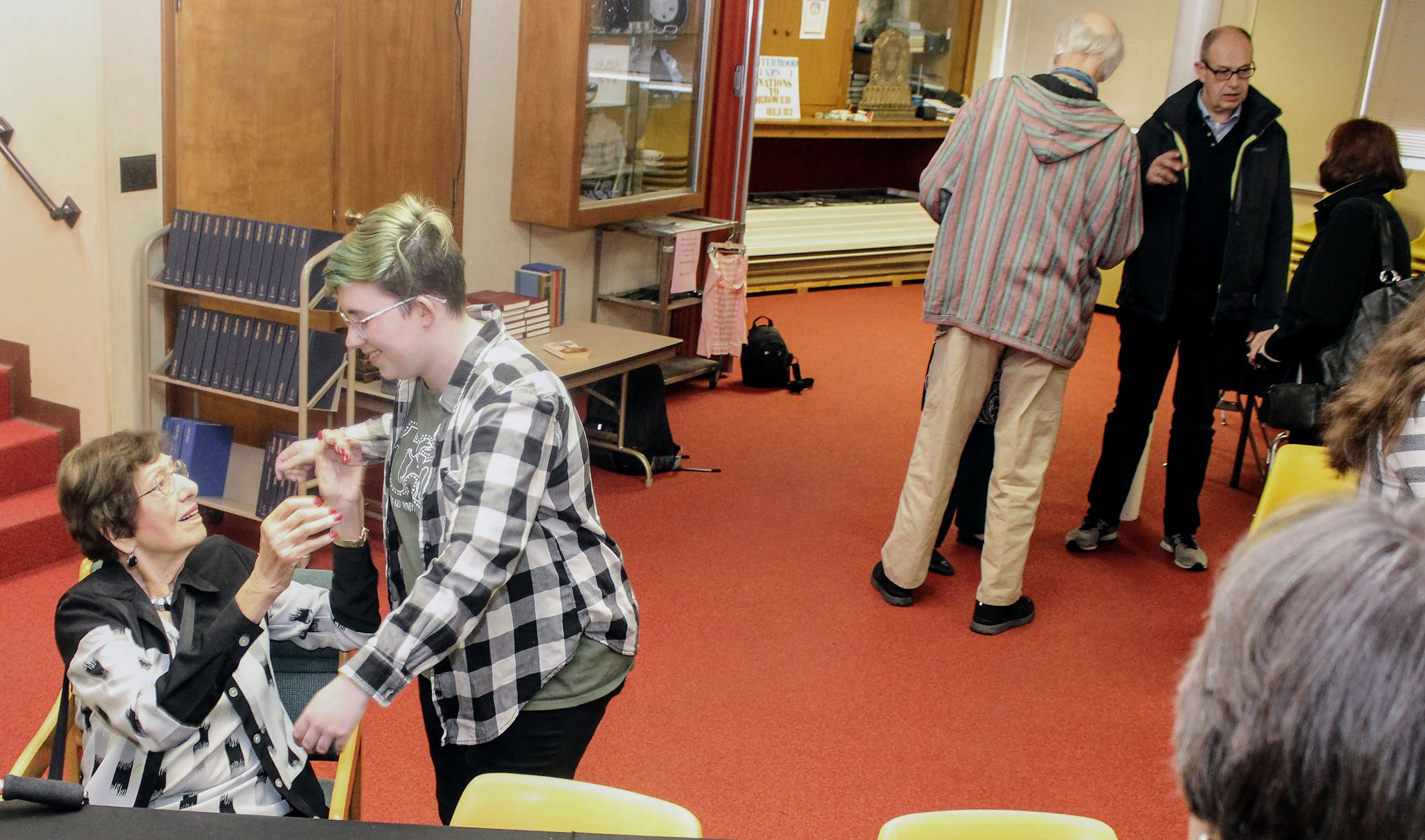Afterward, representatives from the Church of Jesus Christ of Latter-day Saints hosted a reception in the Vestry Room, where guests lingered to discuss the program and visit with Agnes, who signed copies of her autobiography.