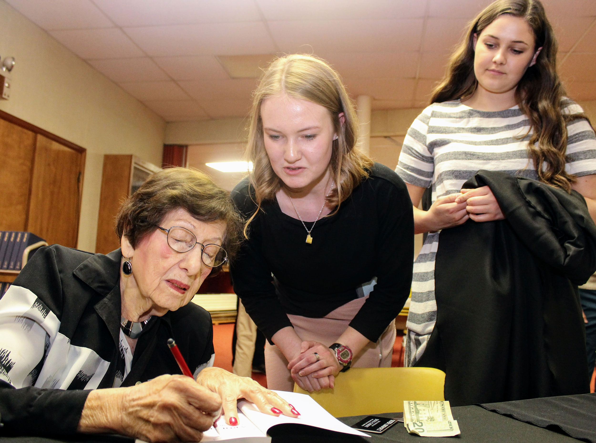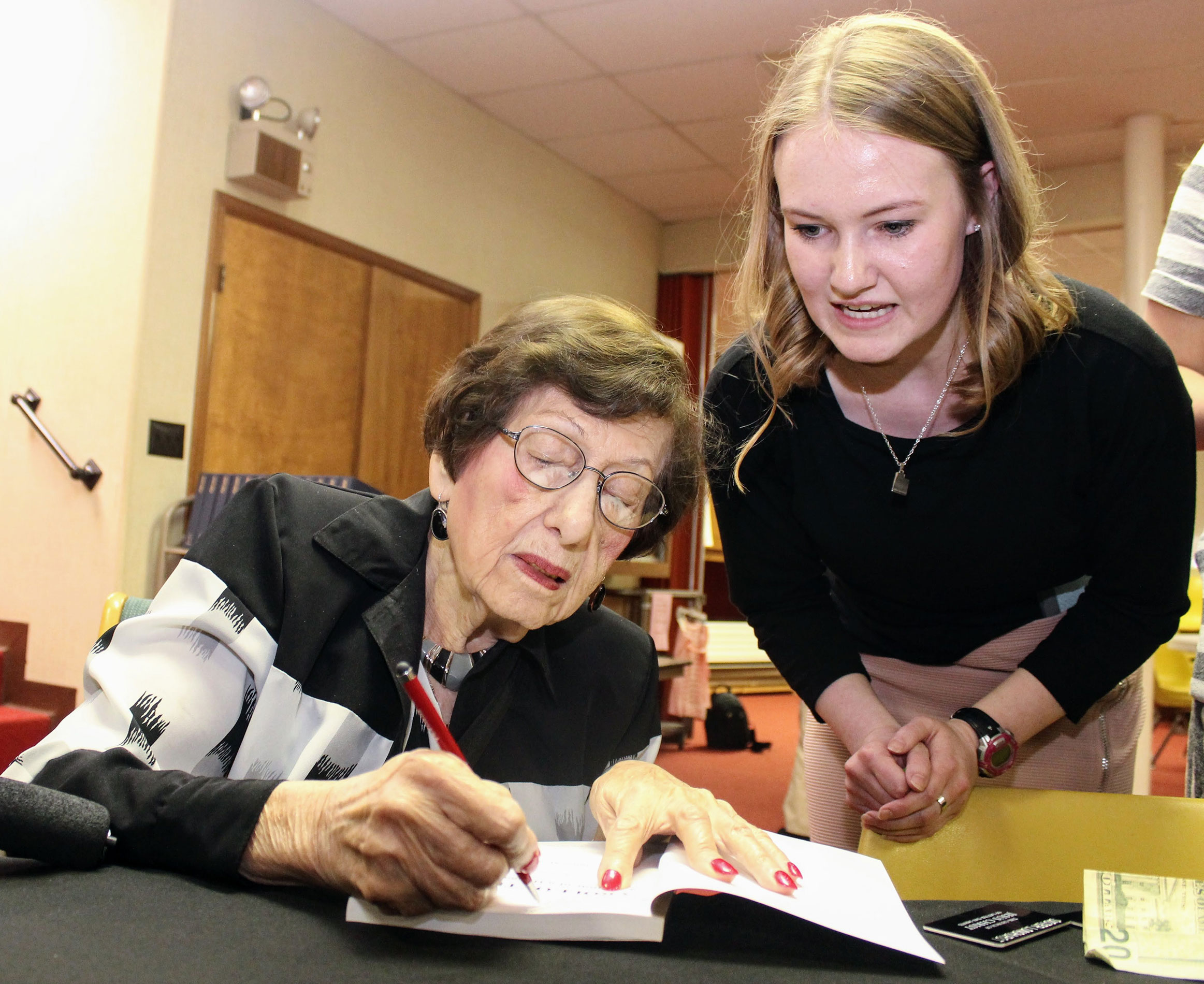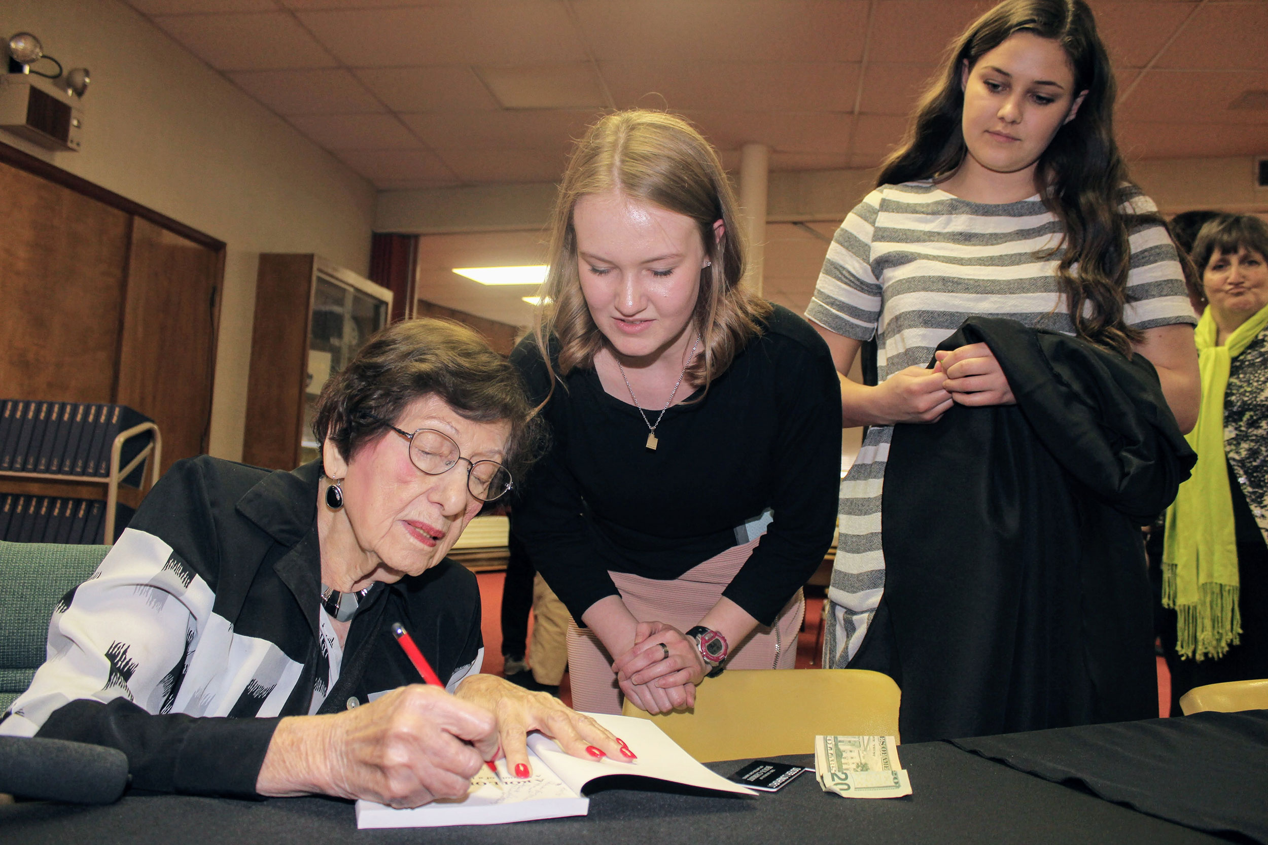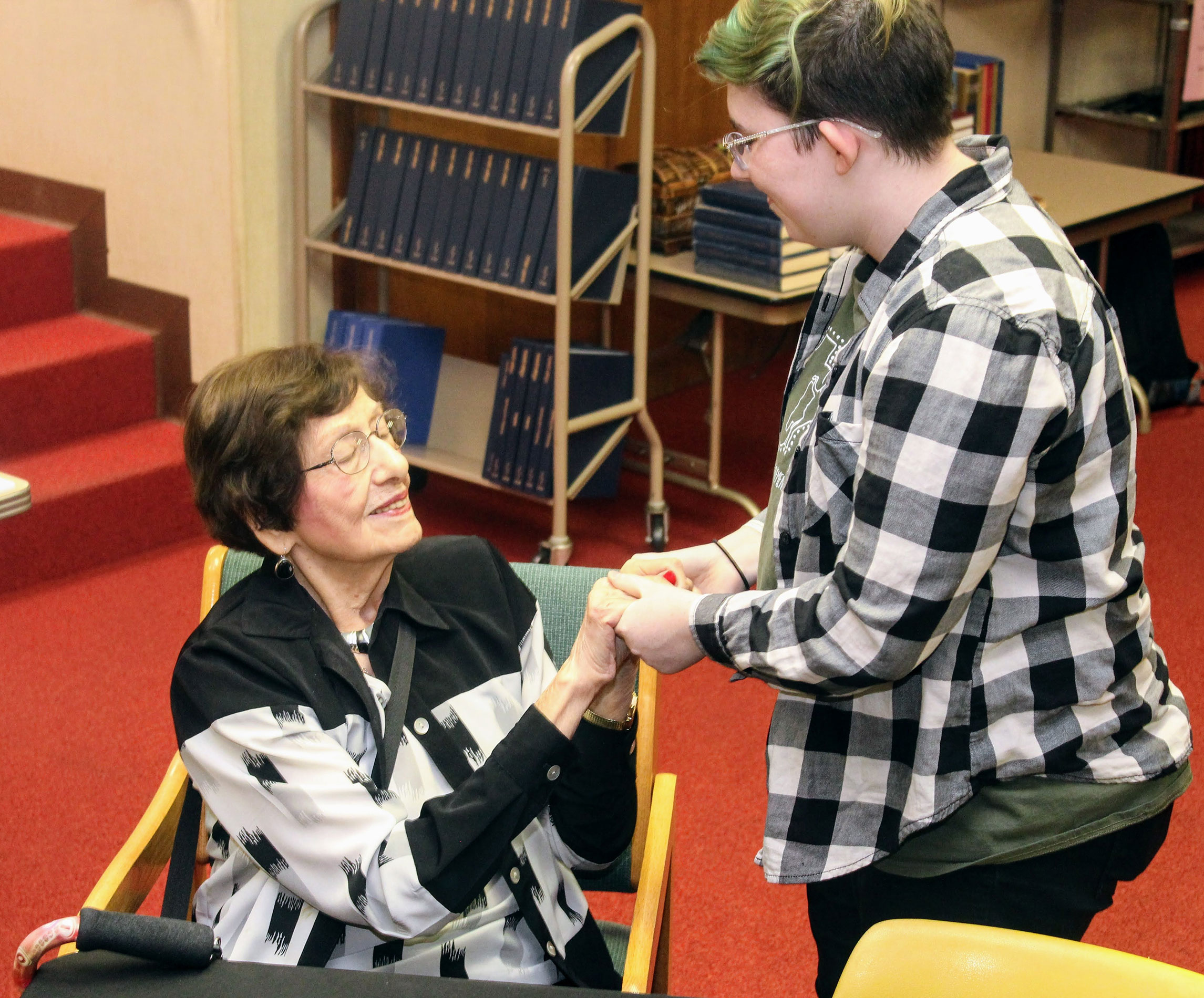Afterward, representatives from the Church of Jesus Christ of Latter-day Saints hosted a reception in the Vestry Room, where guests lingered to discuss the program and visit with Agnes, who signed copies of her autobiography.