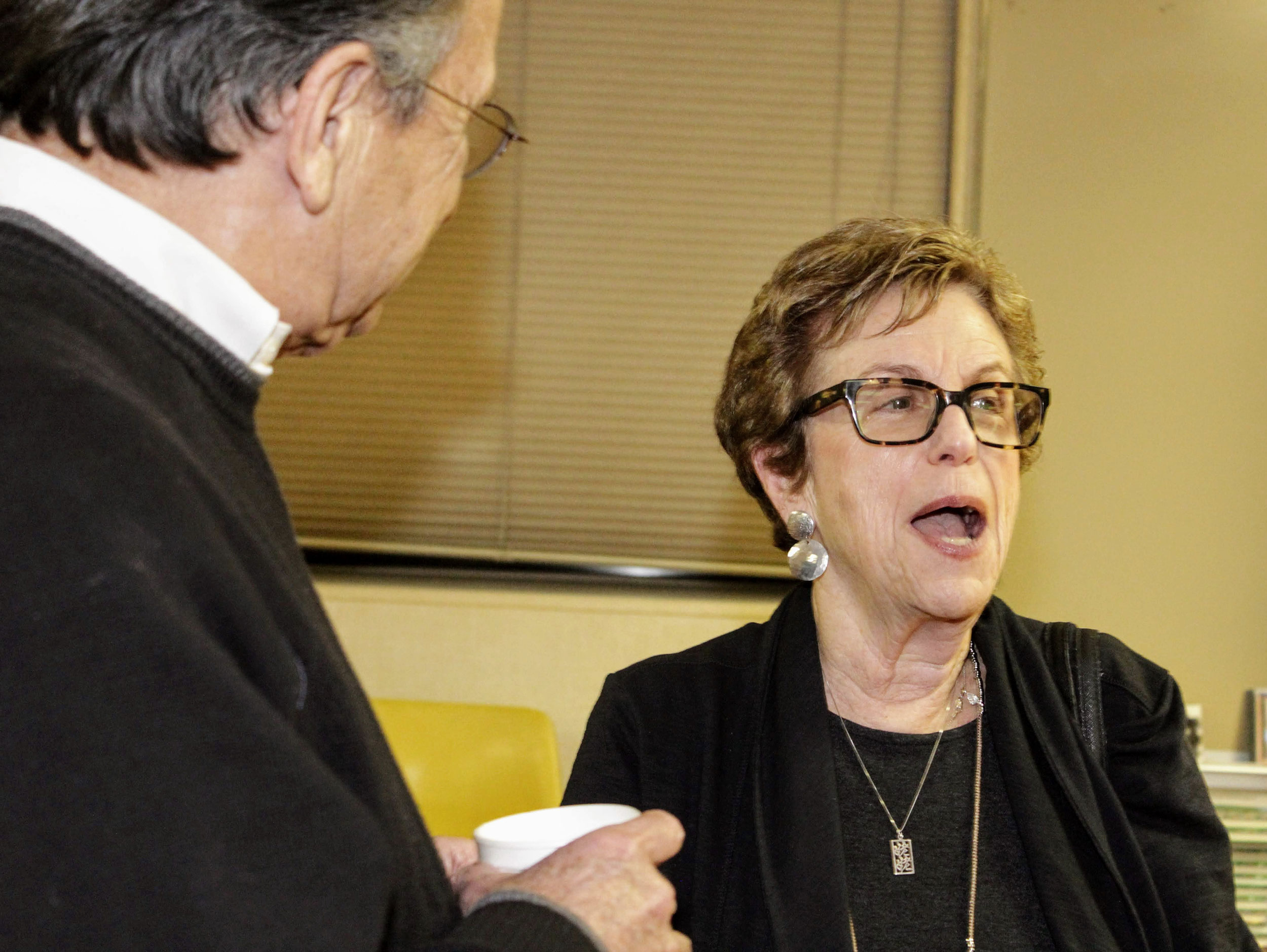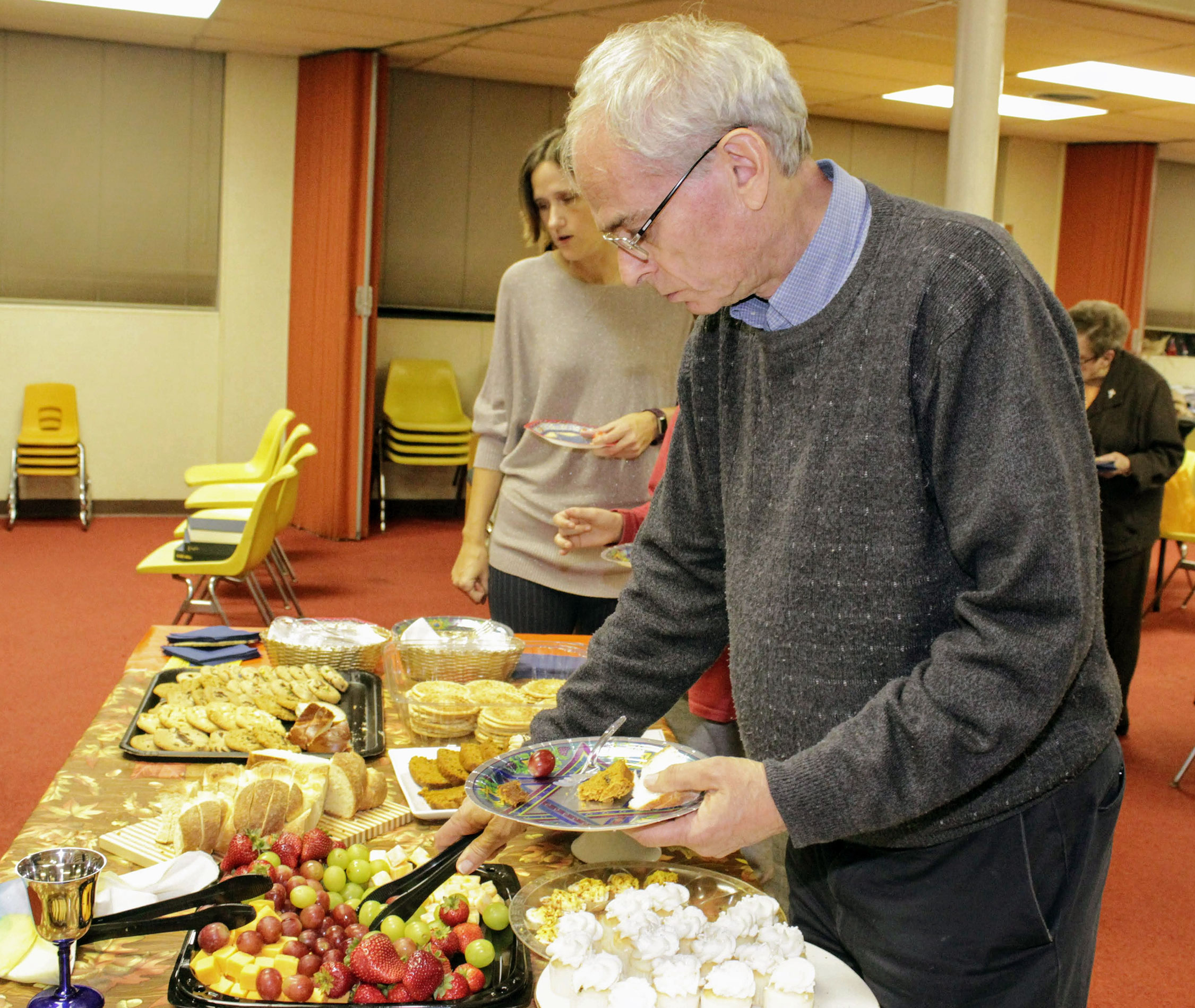 Visitors lingered for coffee, cake and conversation at the traditional oneg, hosted by Temple Sisterhood.