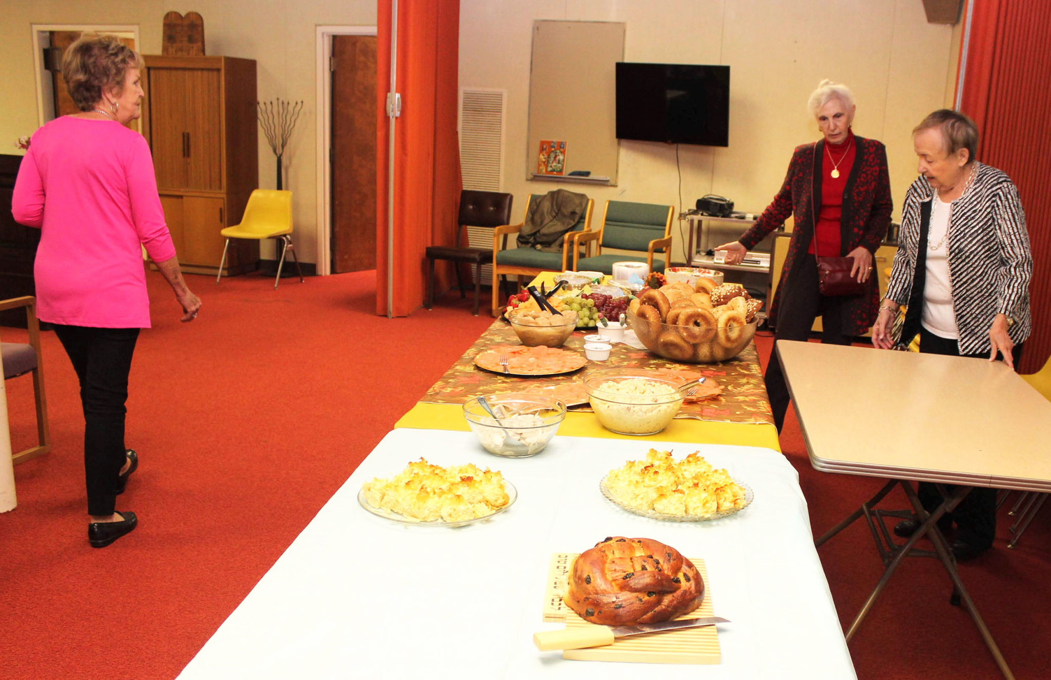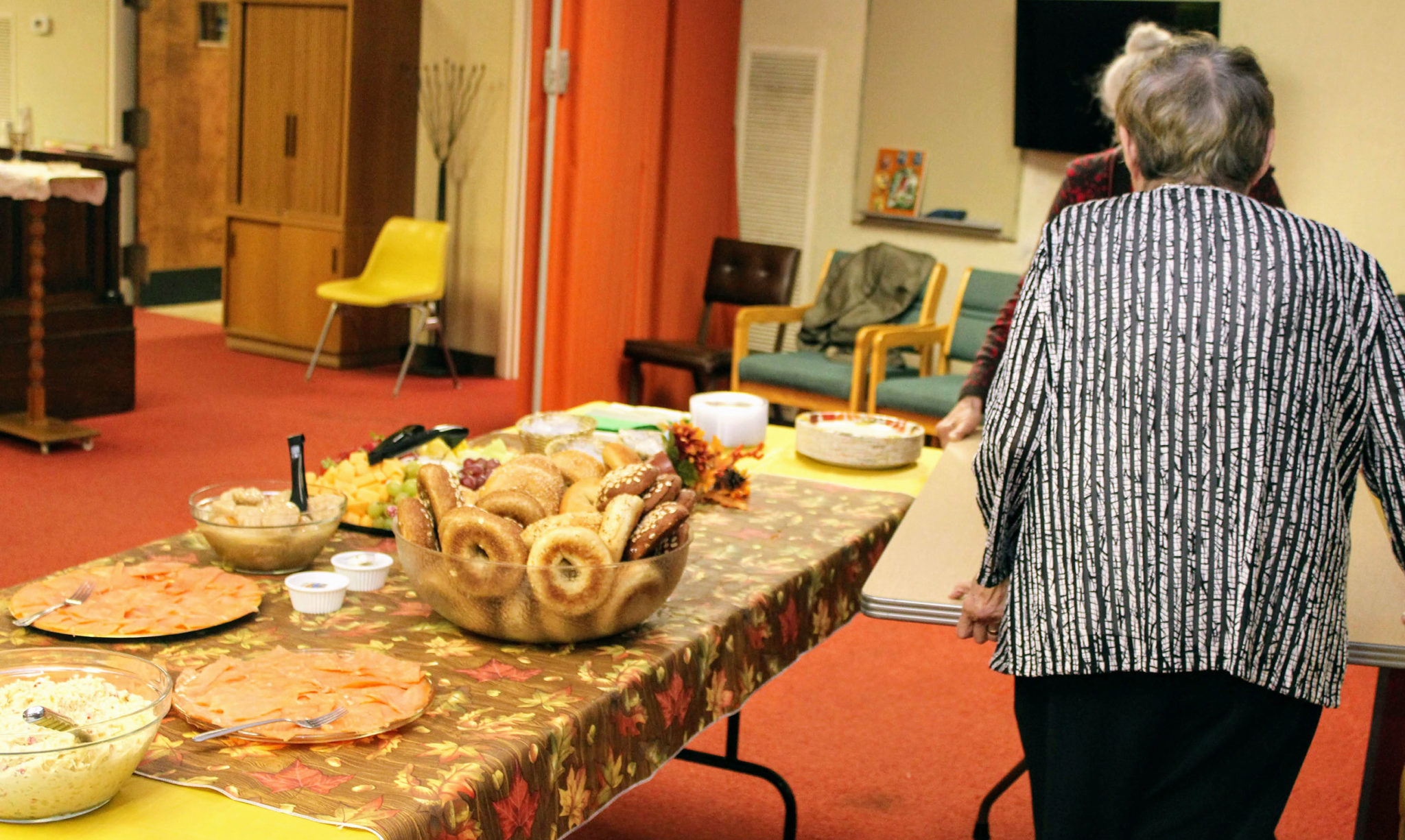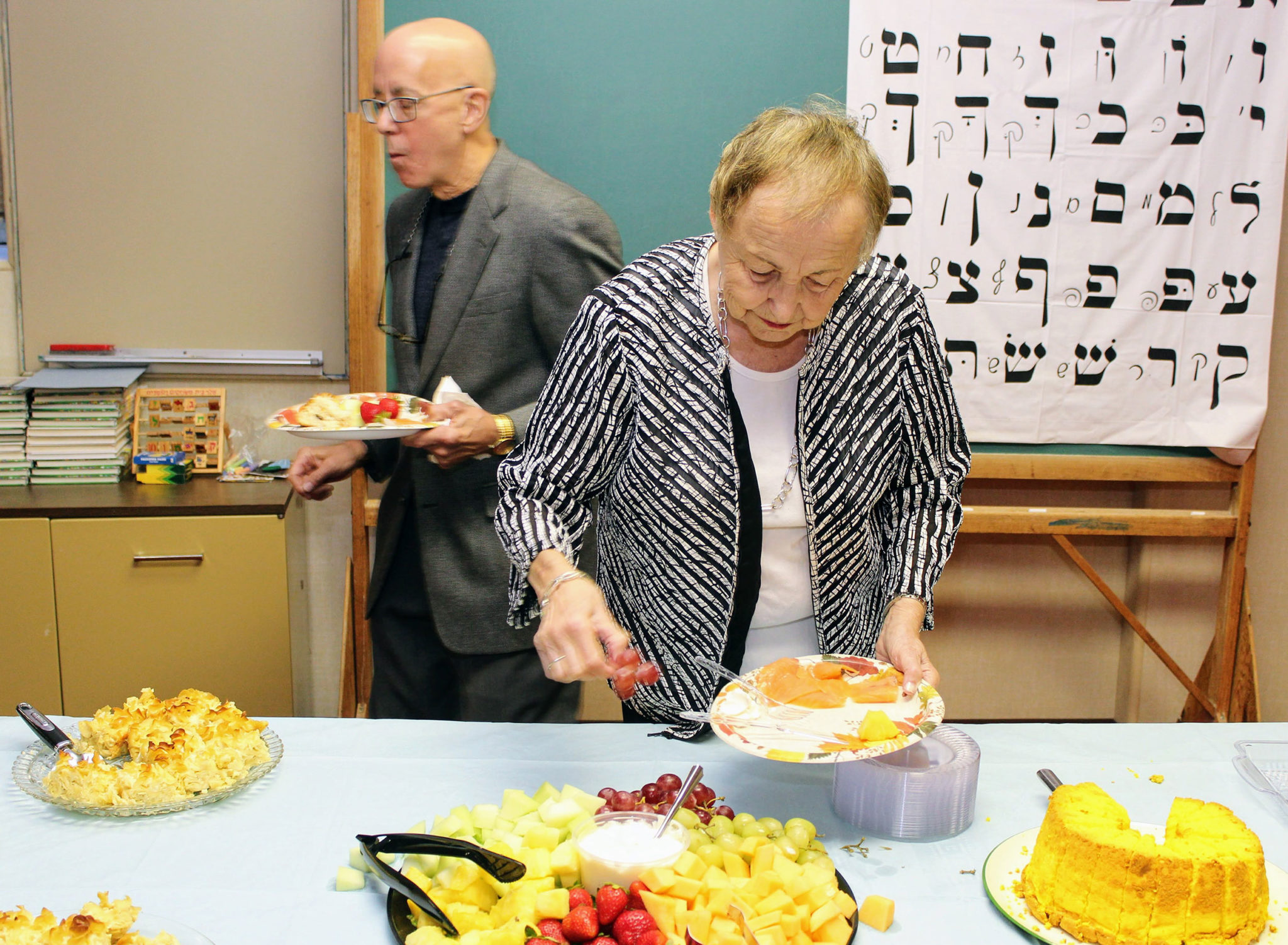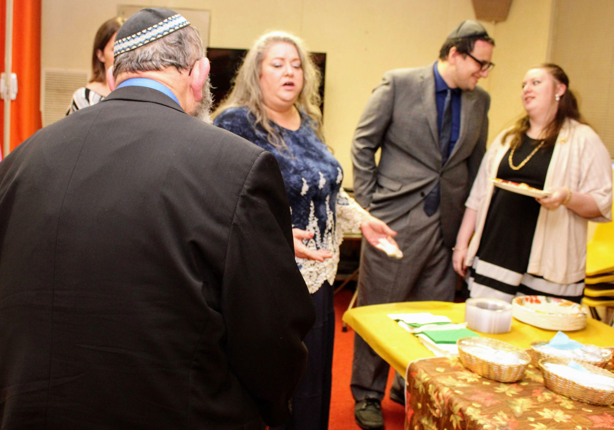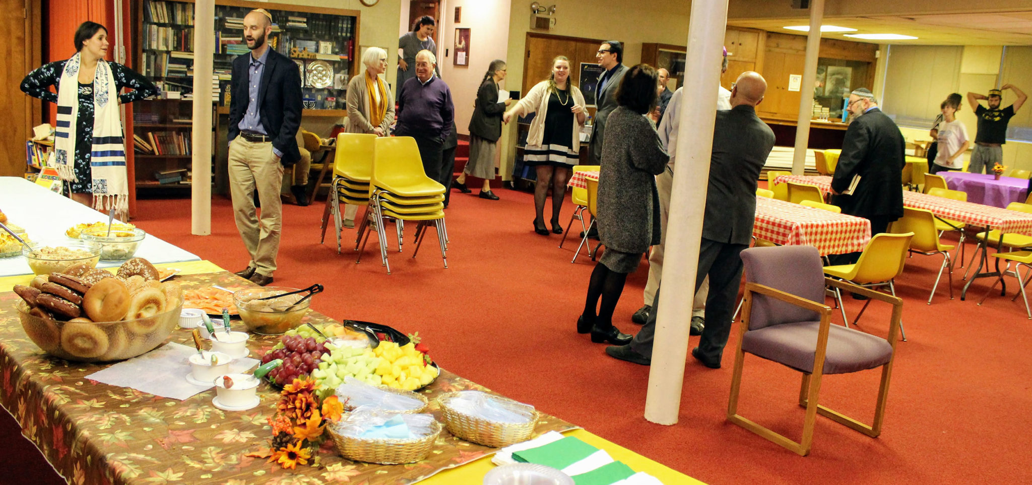 Break-the-Fast is a popular tradition following annual Yom Kippur services at UHC. Congregants and guests joined Student Rabbi Remy Liverman in the Vestry Room this year for bagels and lox, herring, kugel and cake.