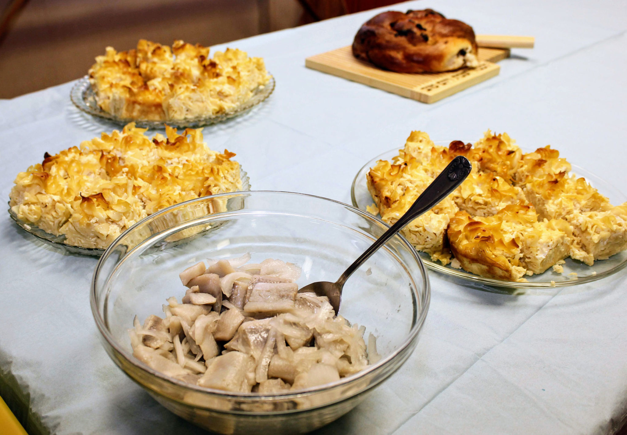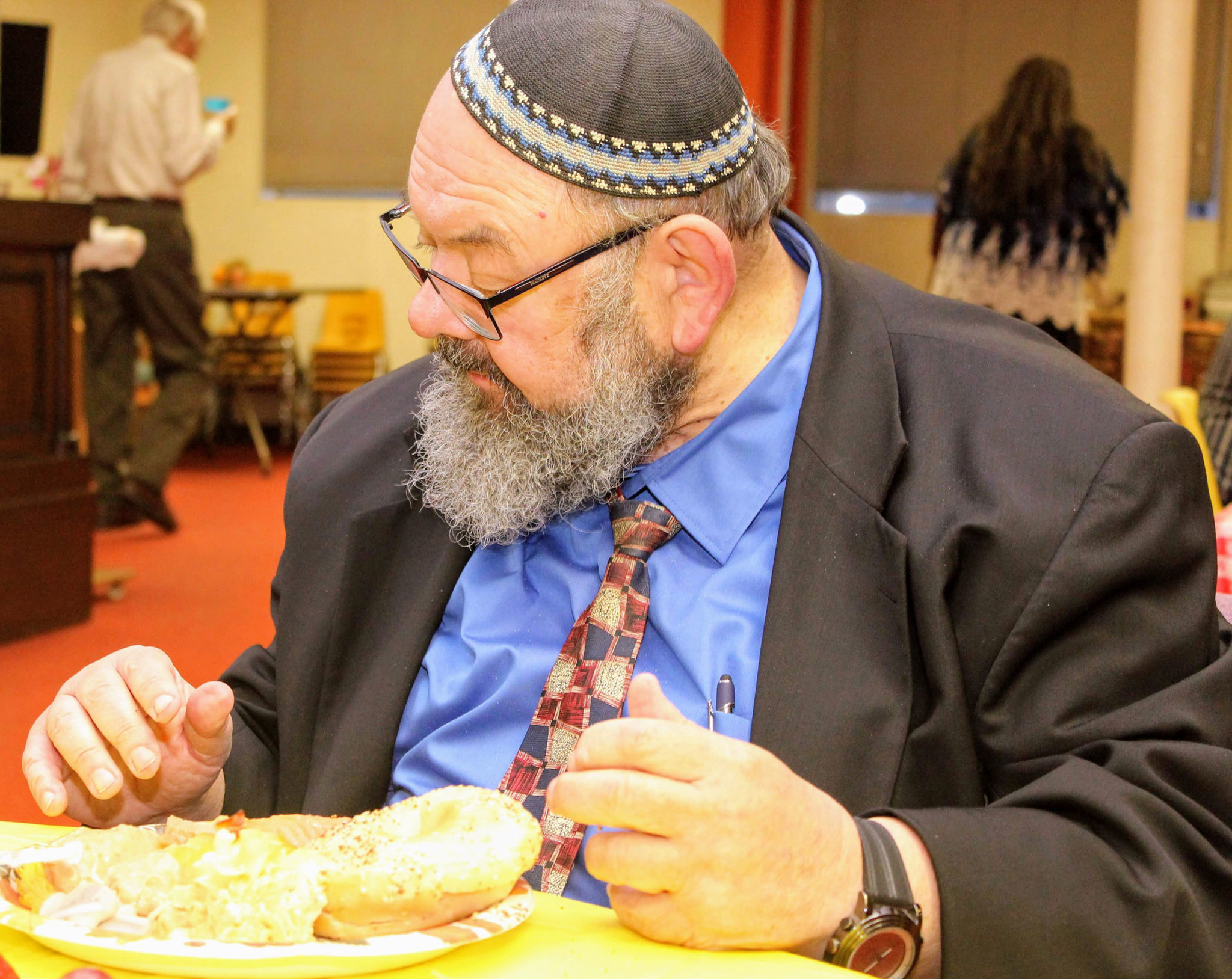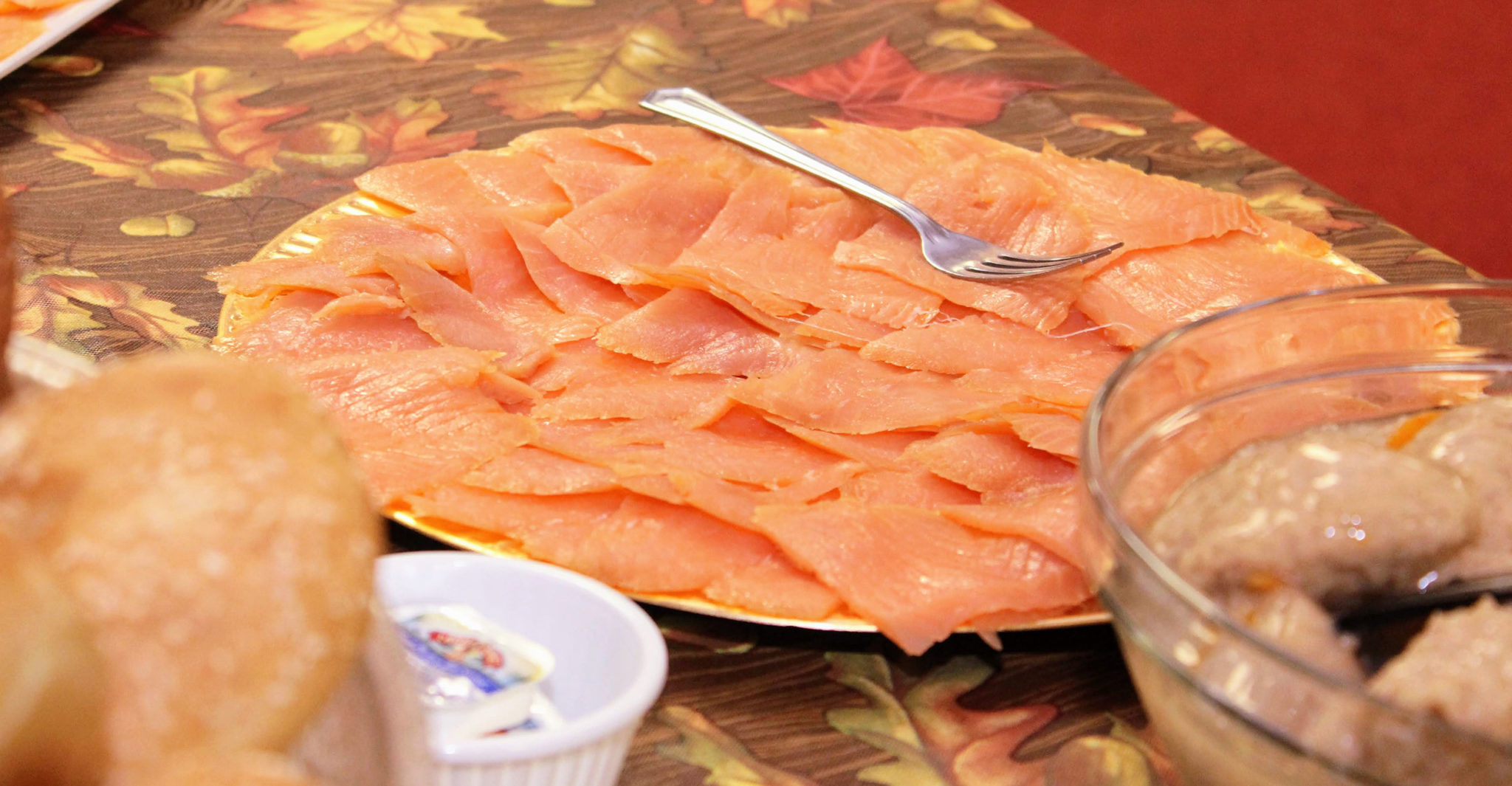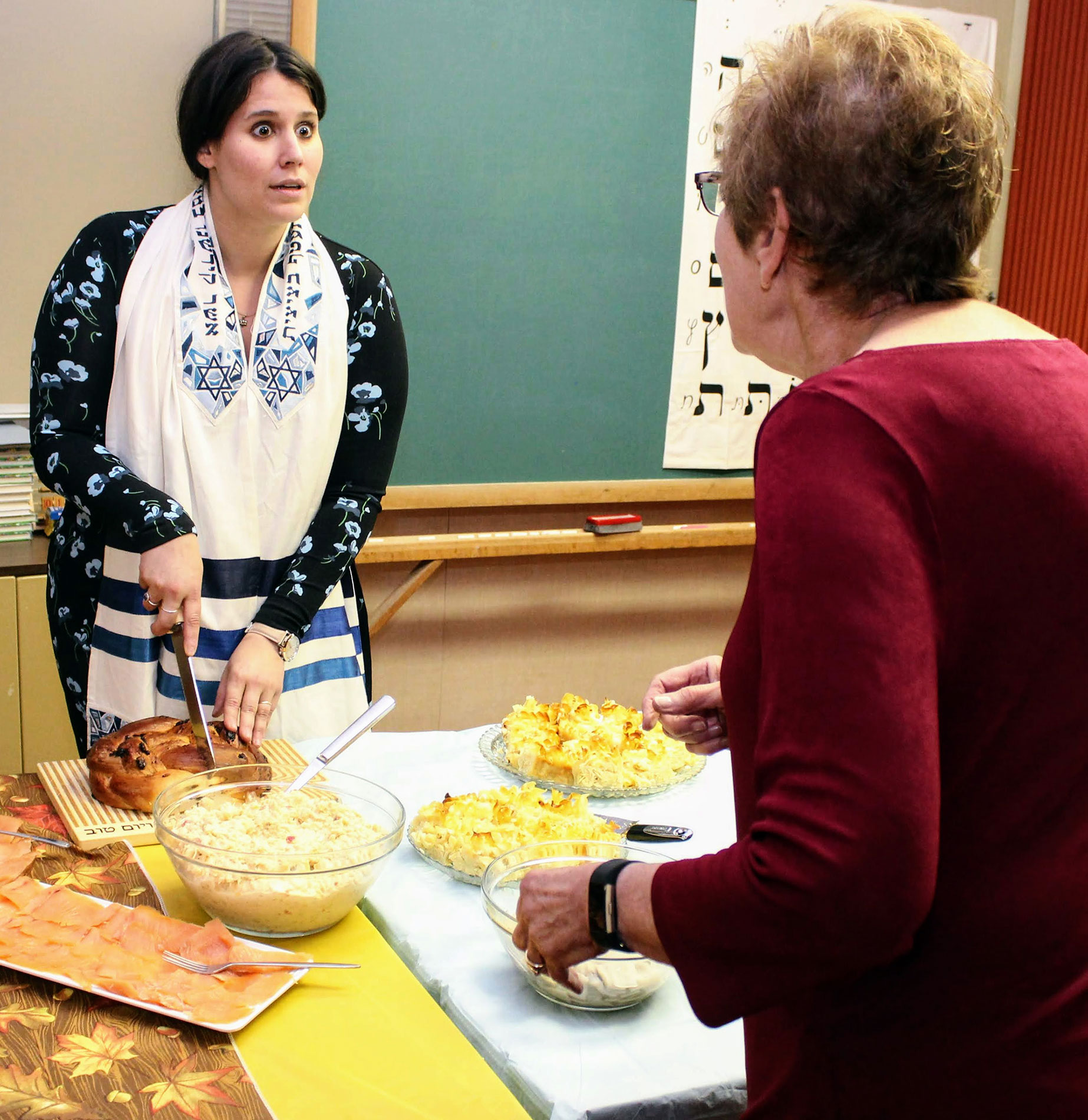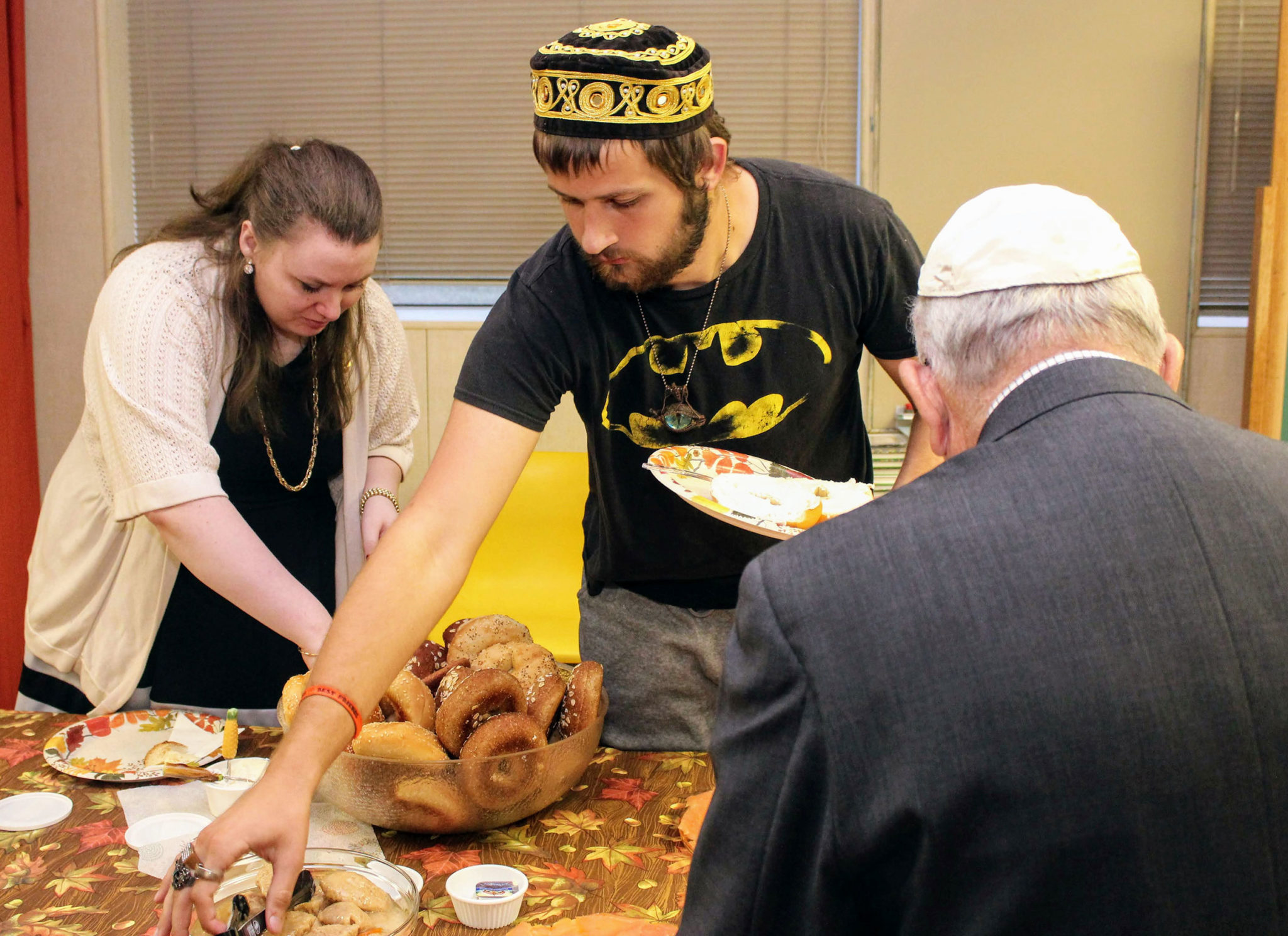 Break-the-Fast is a popular tradition following annual Yom Kippur services at UHC. Congregants and guests joined Student Rabbi Remy Liverman in the Vestry Room this year for bagels and lox, herring, kugel and cake.