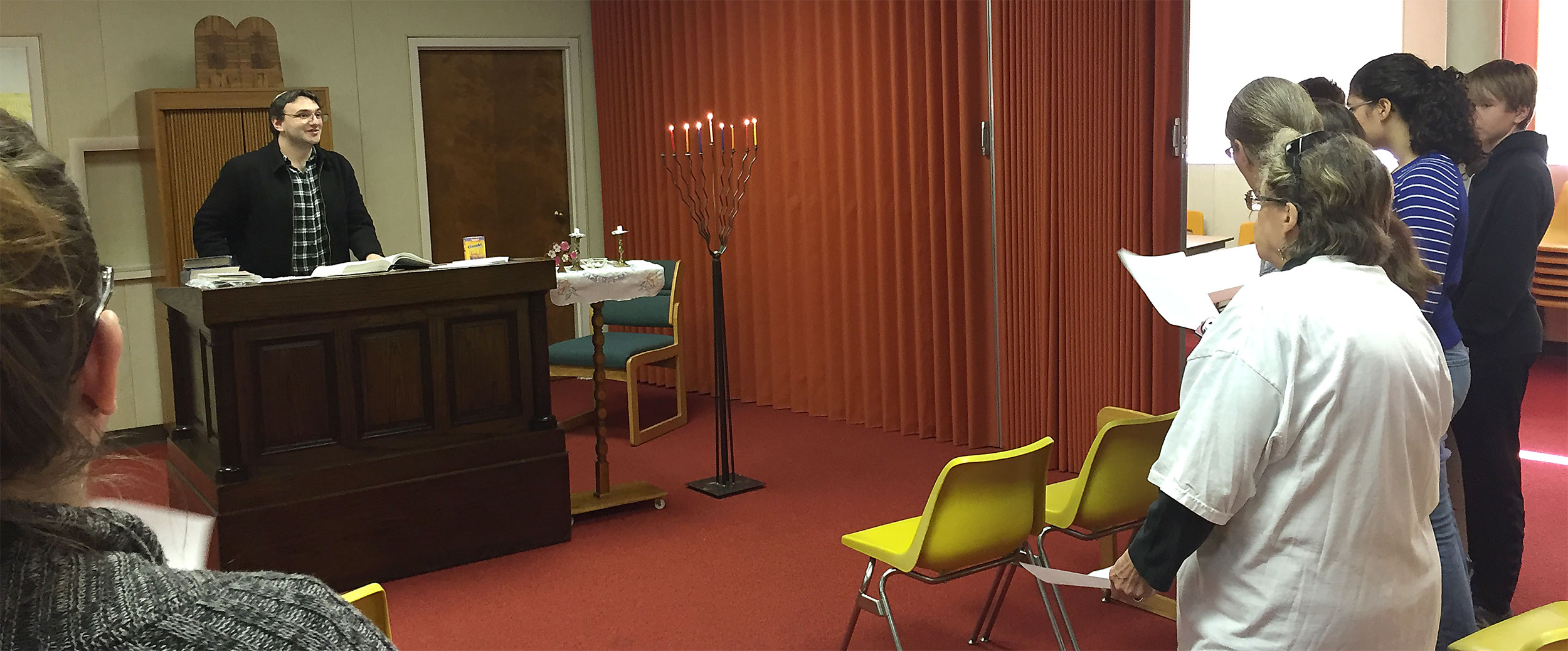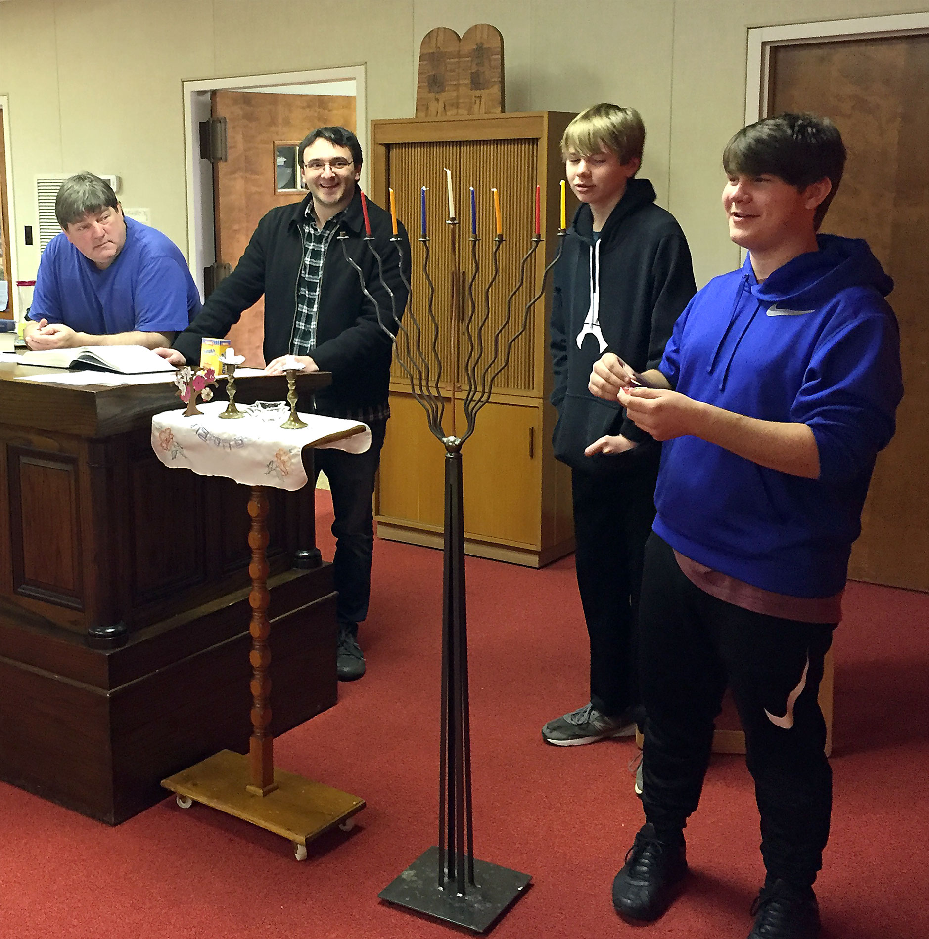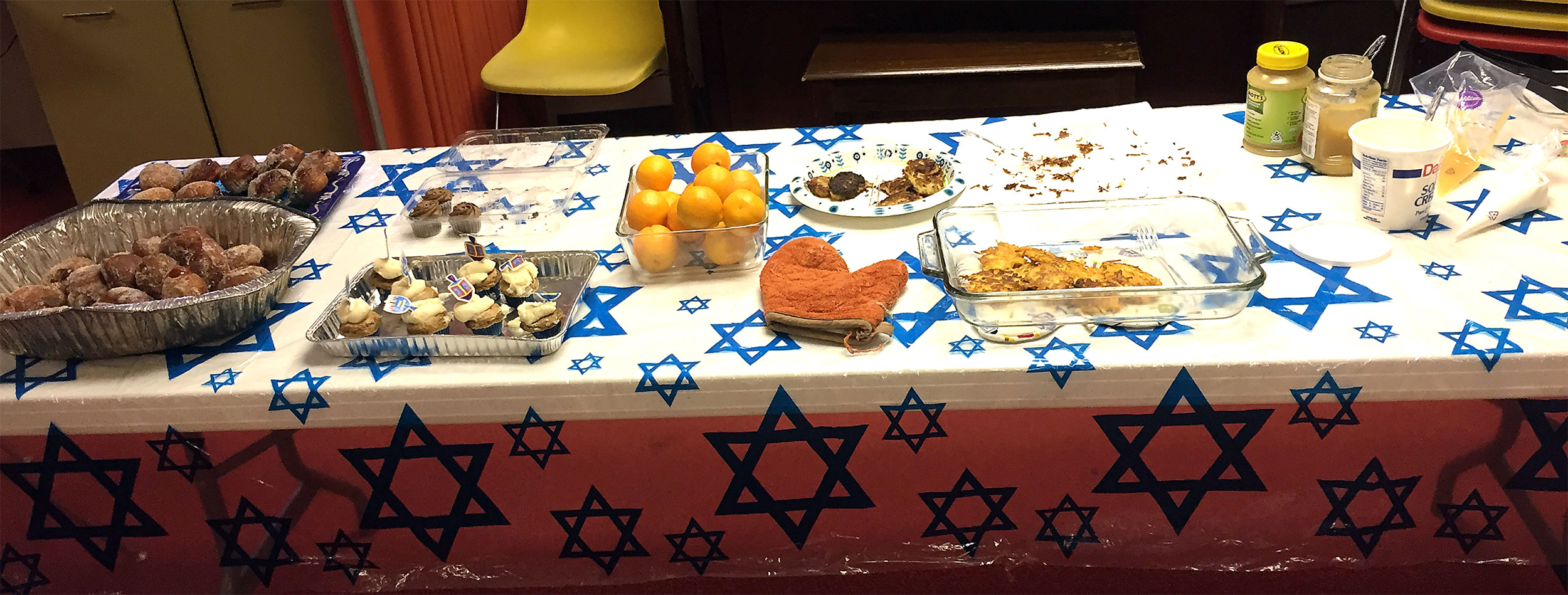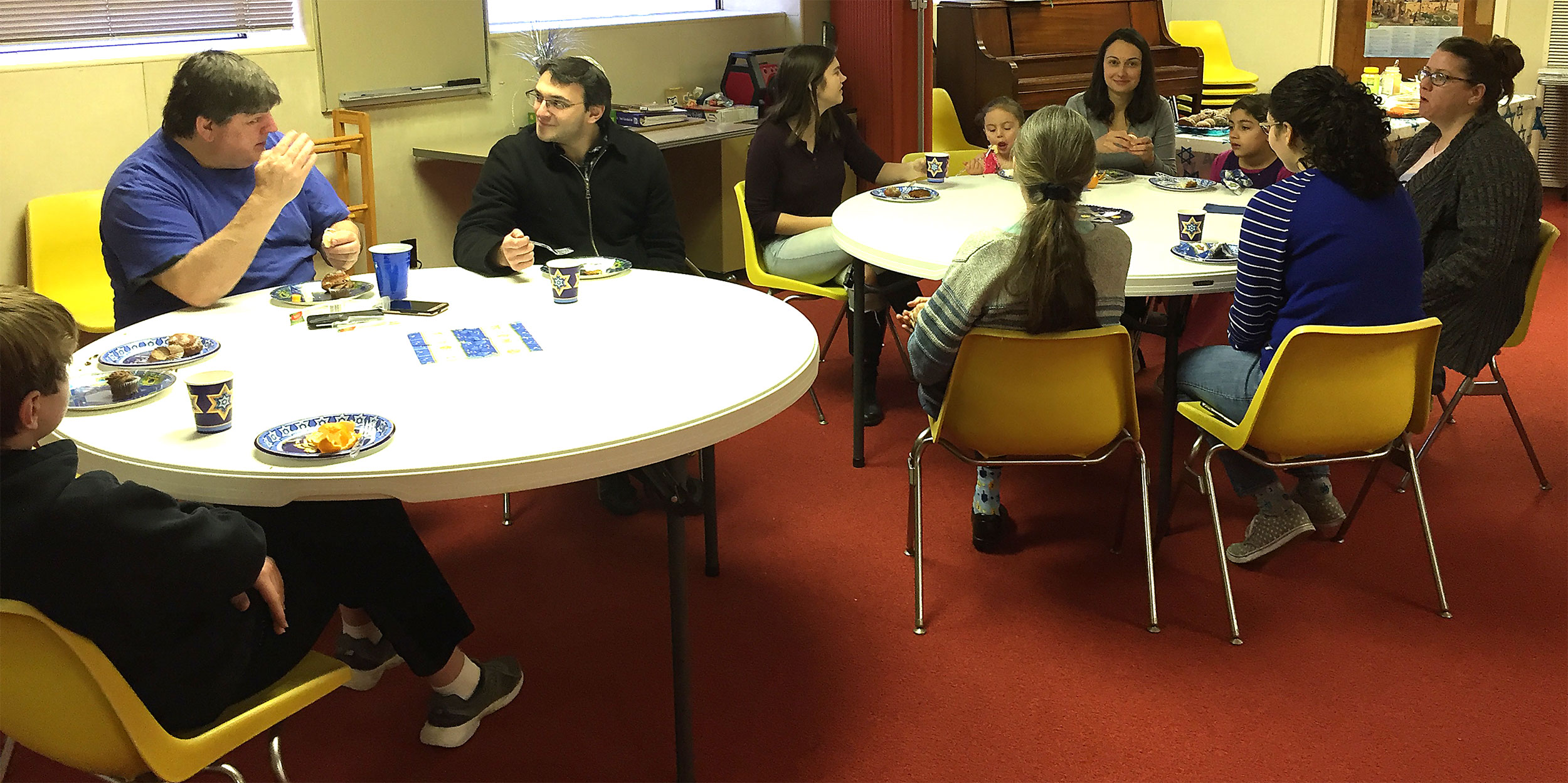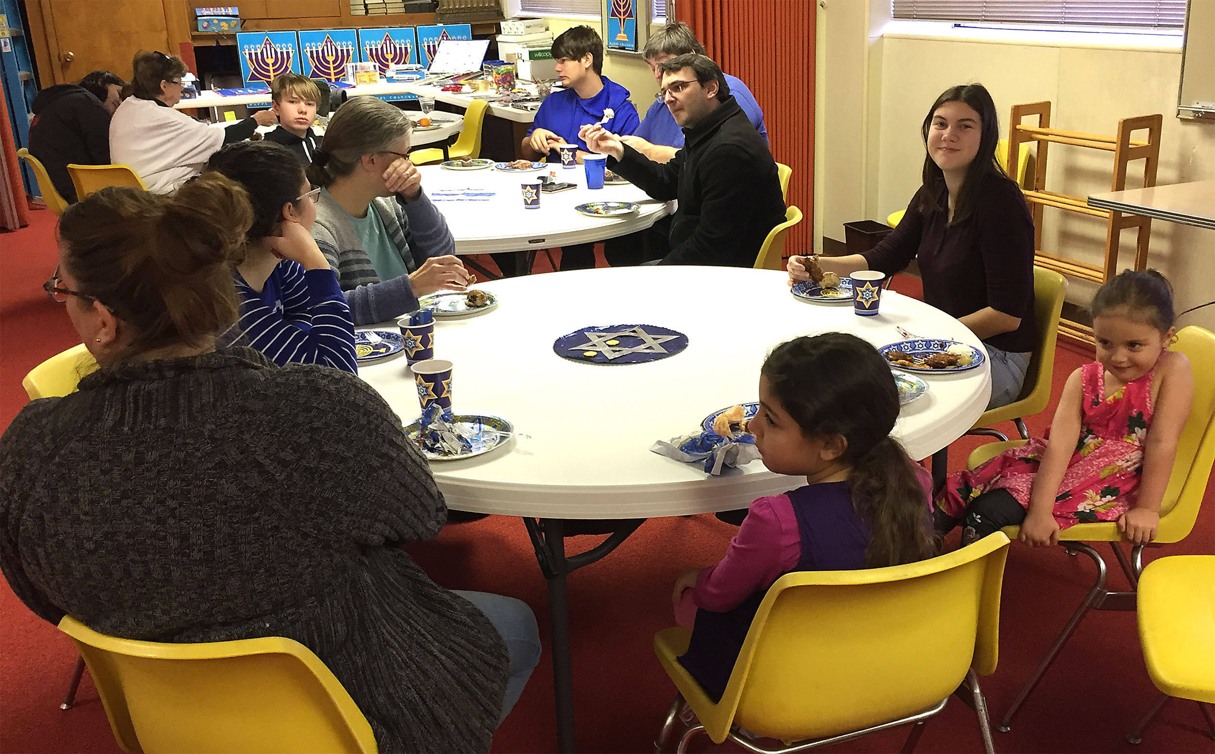 Religious school played host to a Hanukkah party at the Temple, with Student Rabbi Jonathan Falco as master of ceremonies.