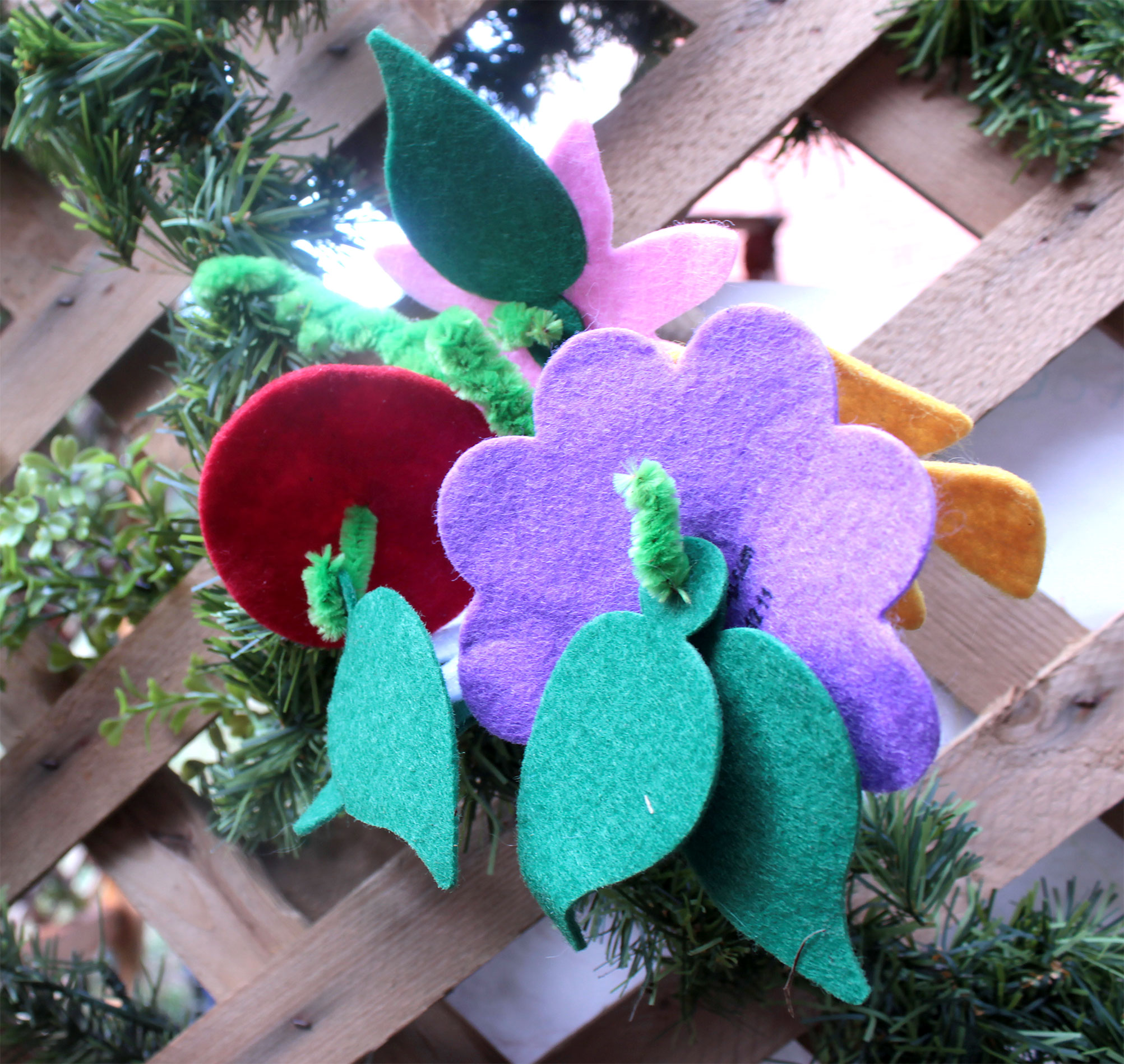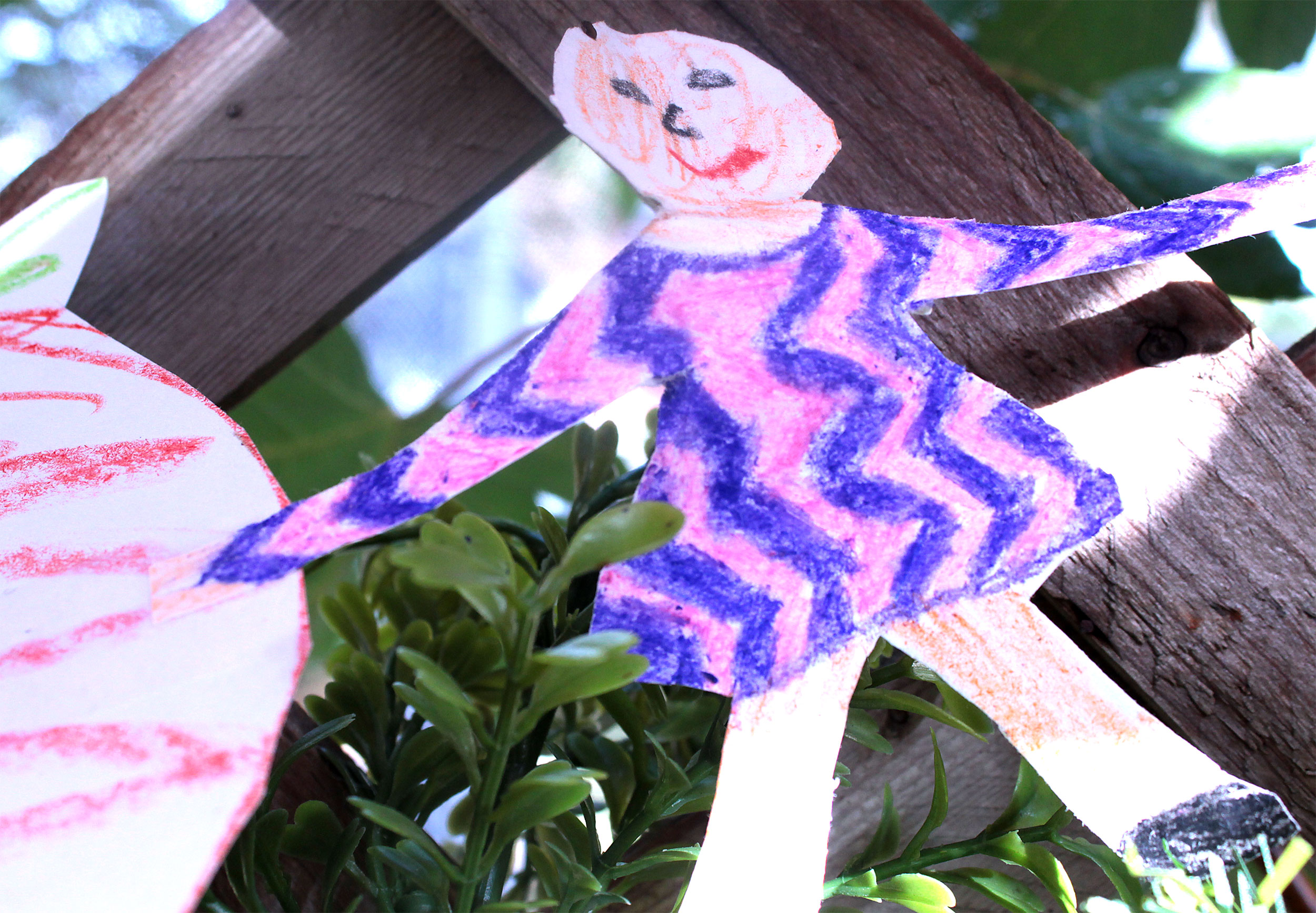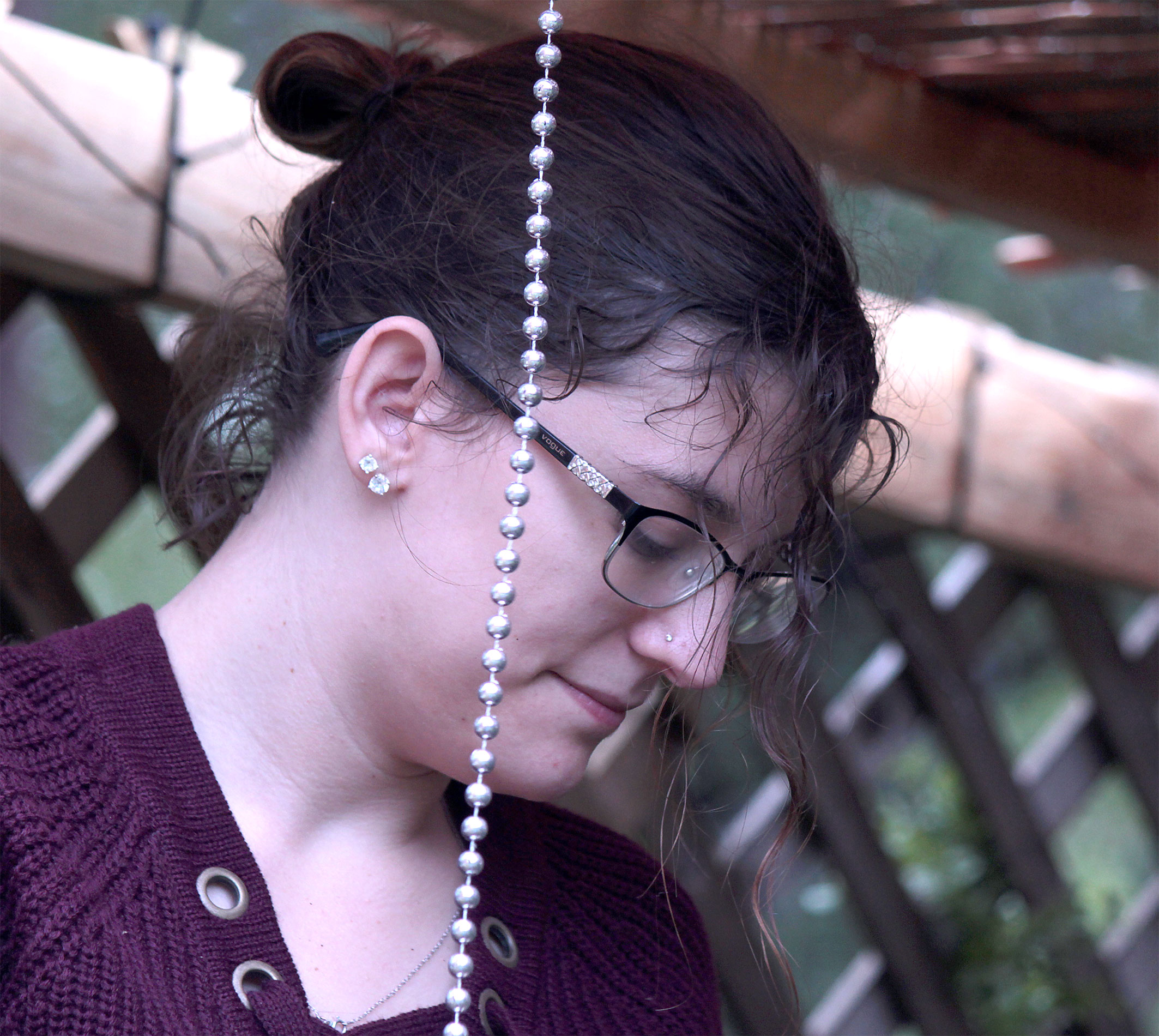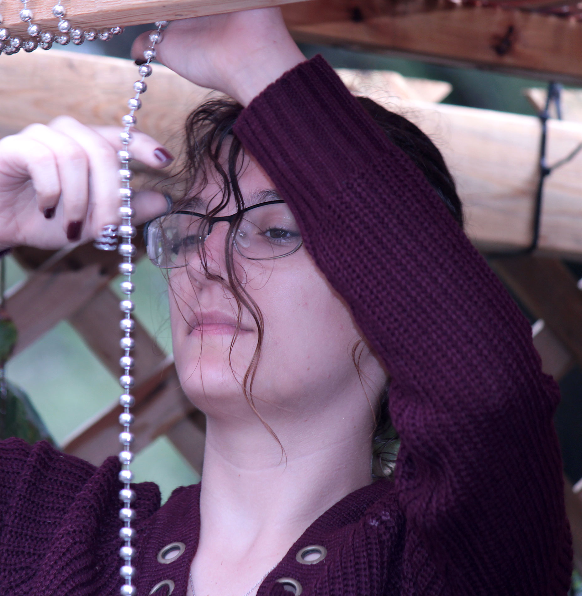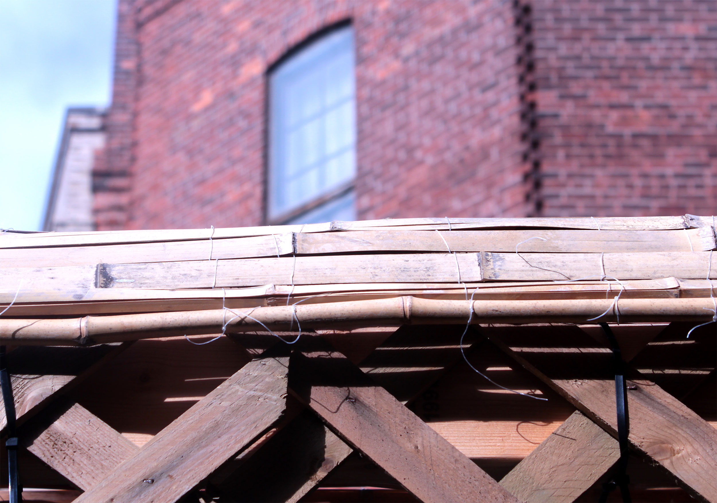 Students and guests decorate the exterior of the sukkah, located in the yard behind Temple Israel, with beads, vines and leafy branches collected from the area.