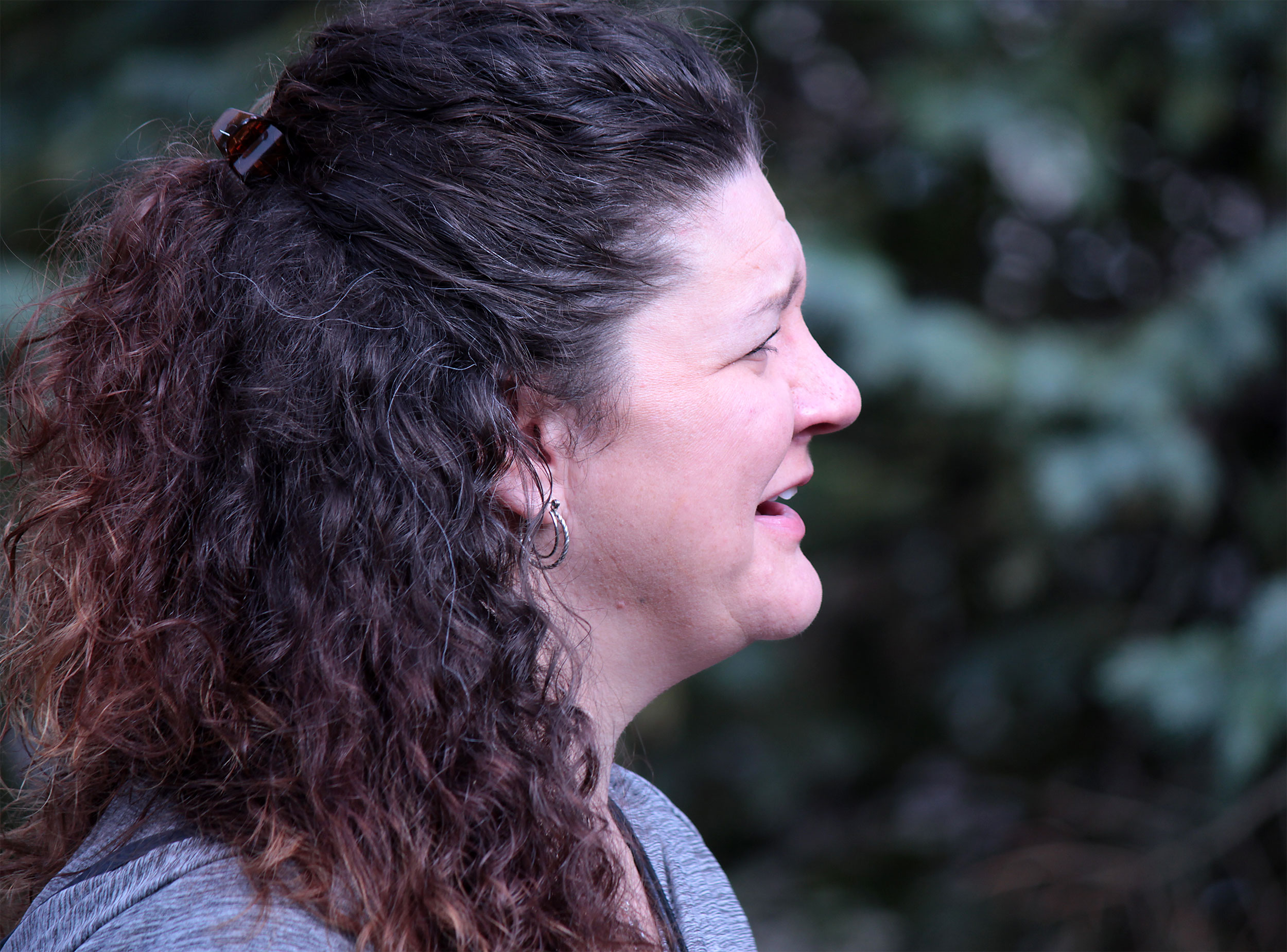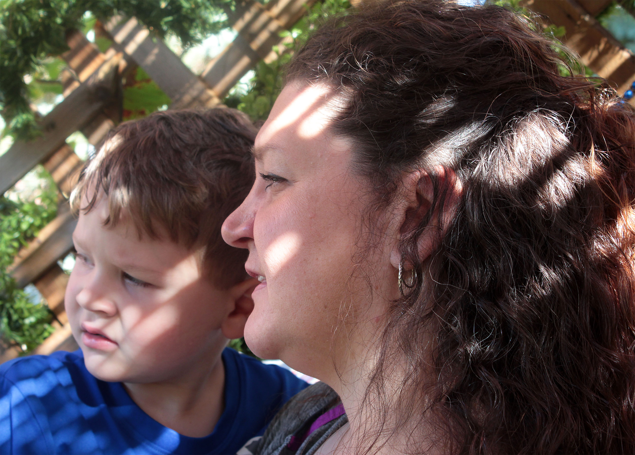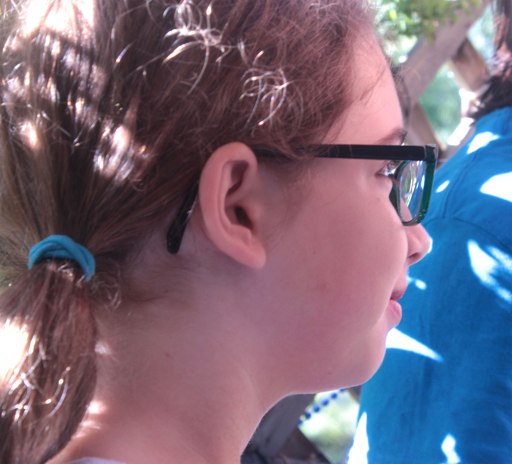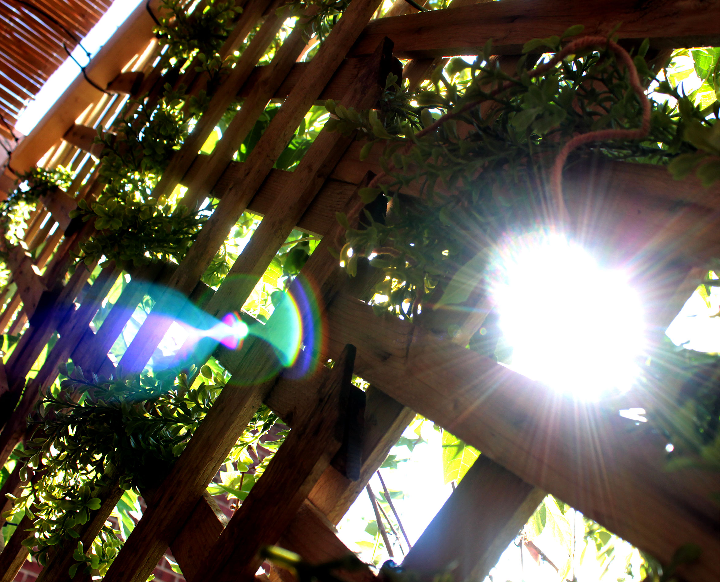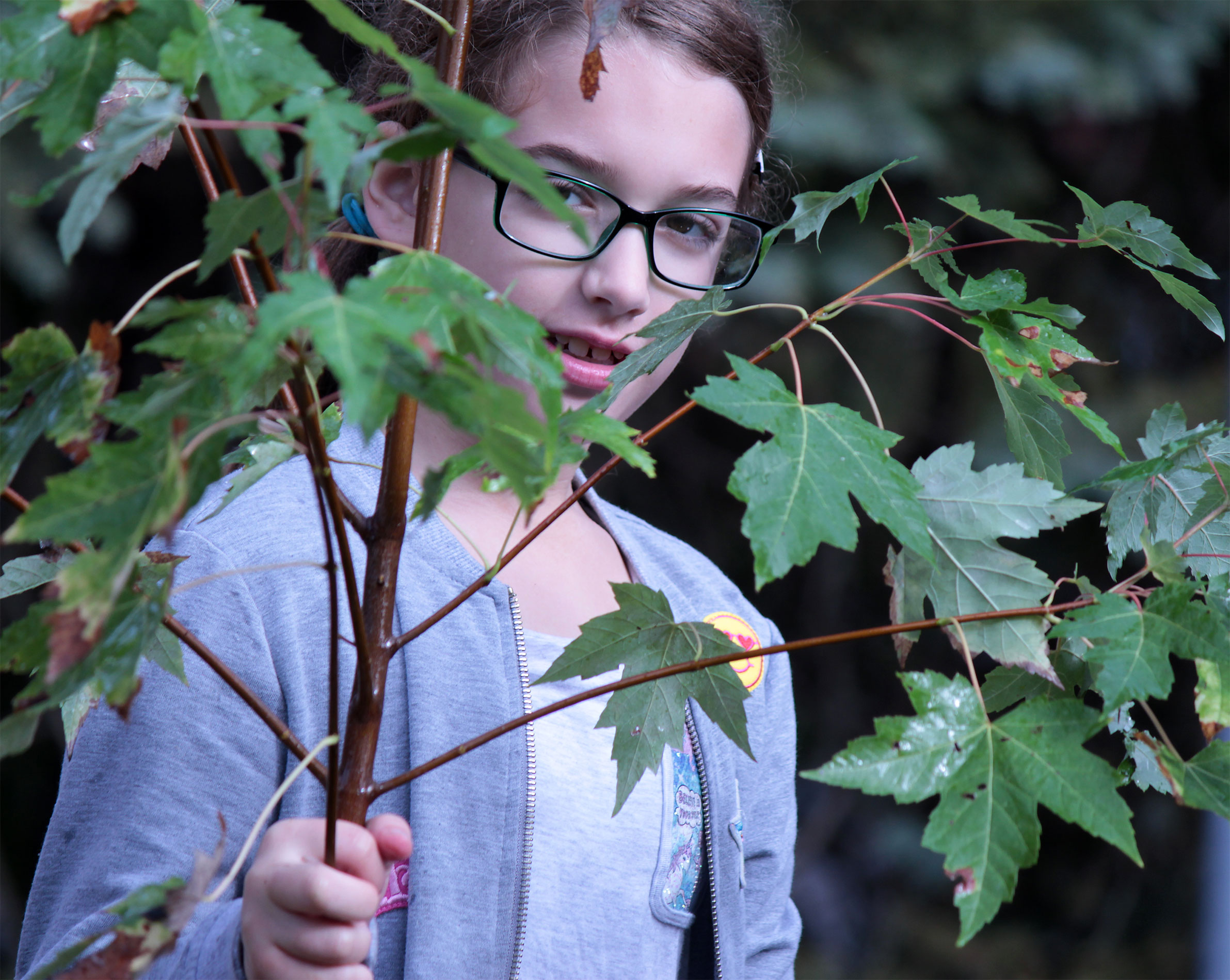 Students and guests decorate the exterior of the sukkah, located in the yard behind Temple Israel, with beads, vines and leafy branches collected from the area.