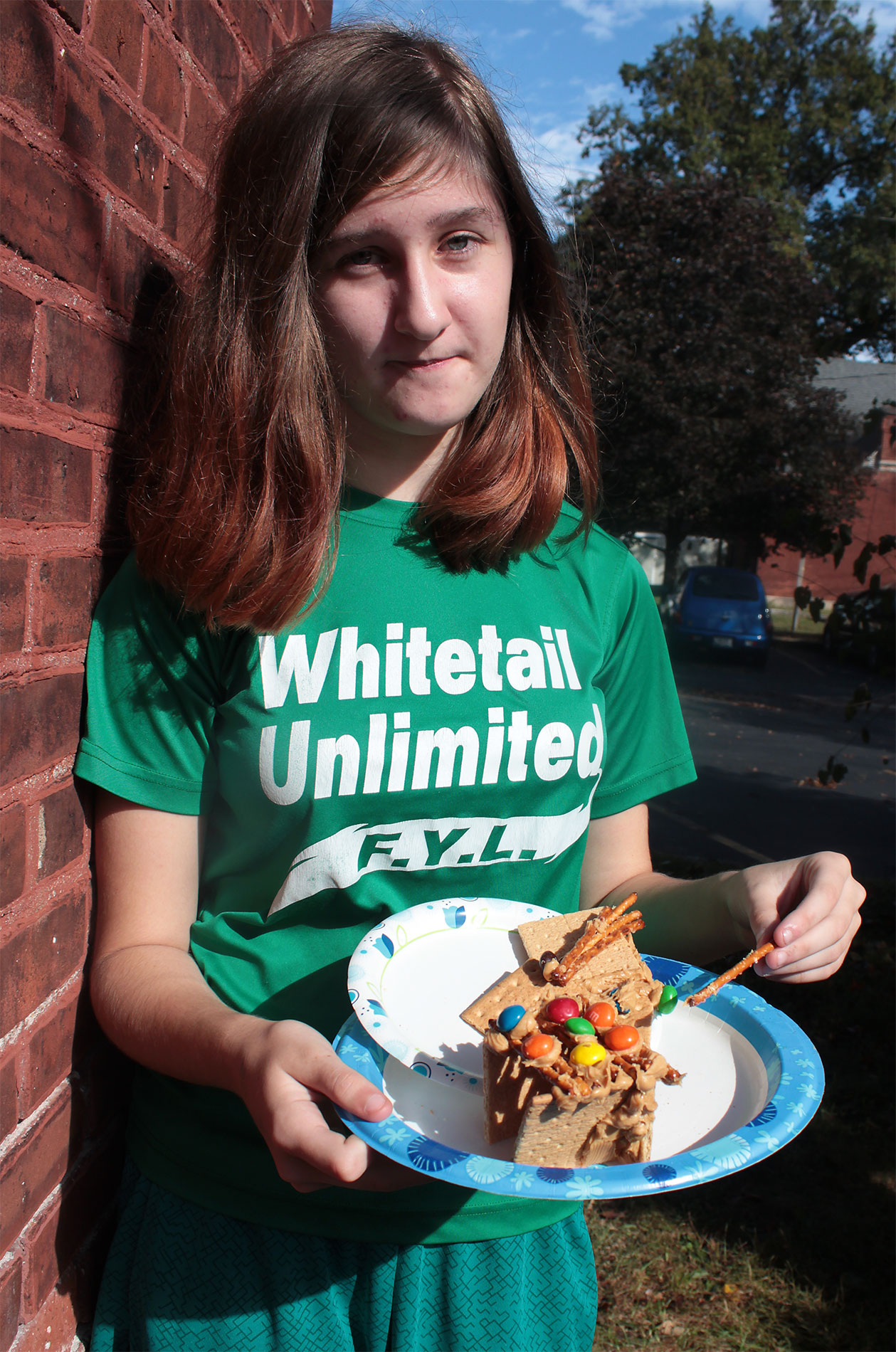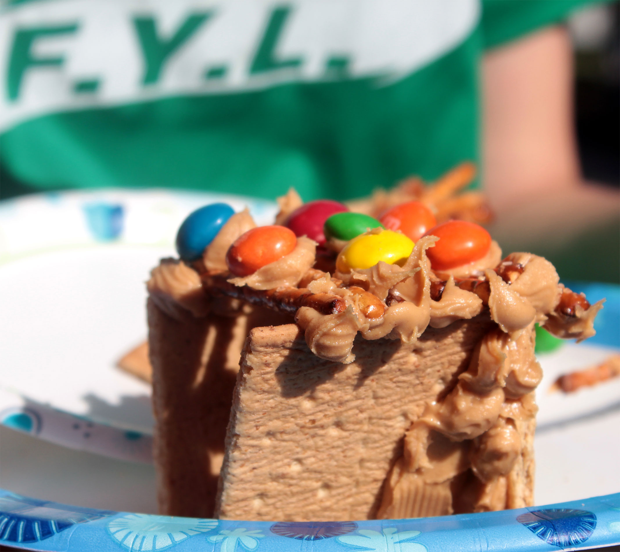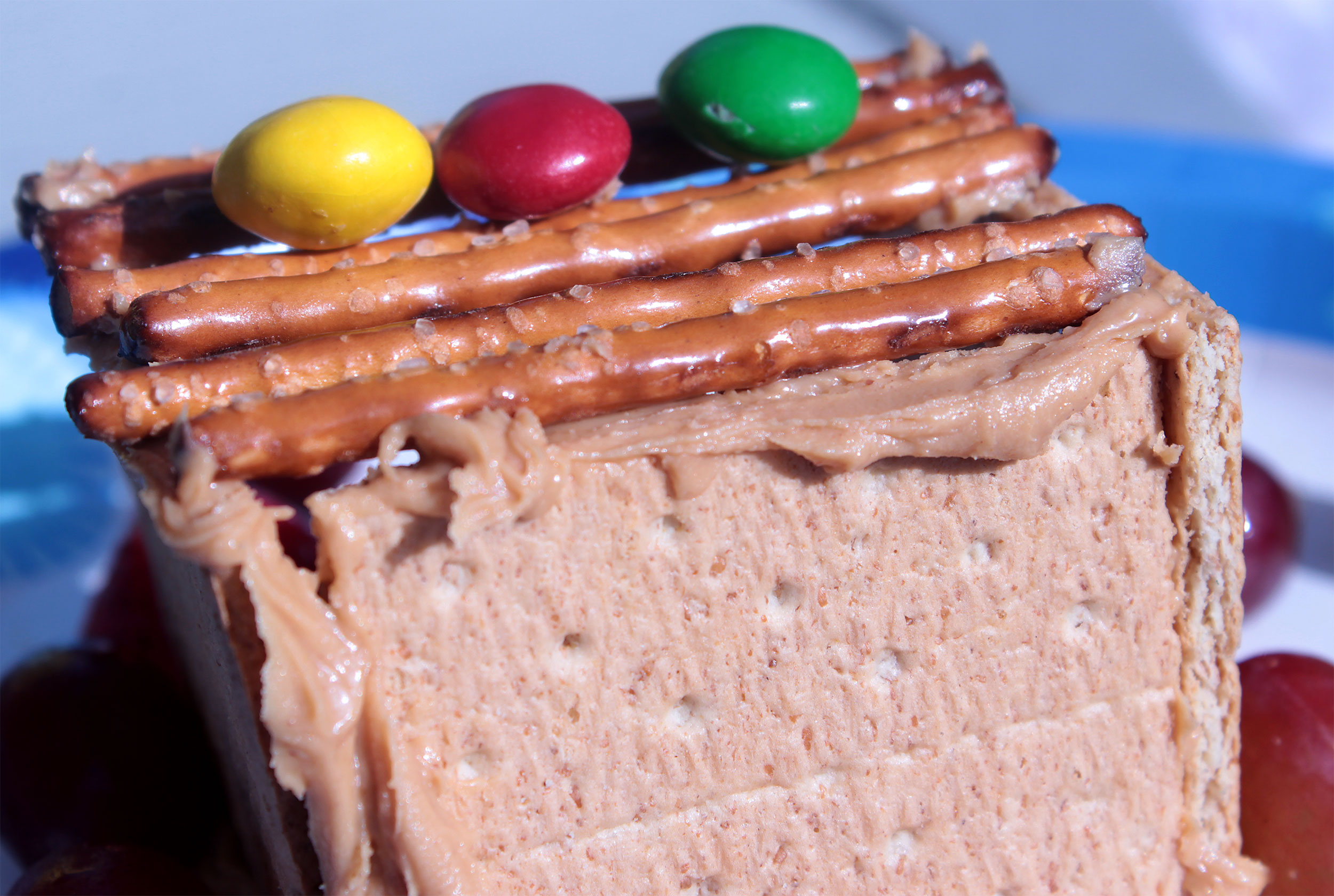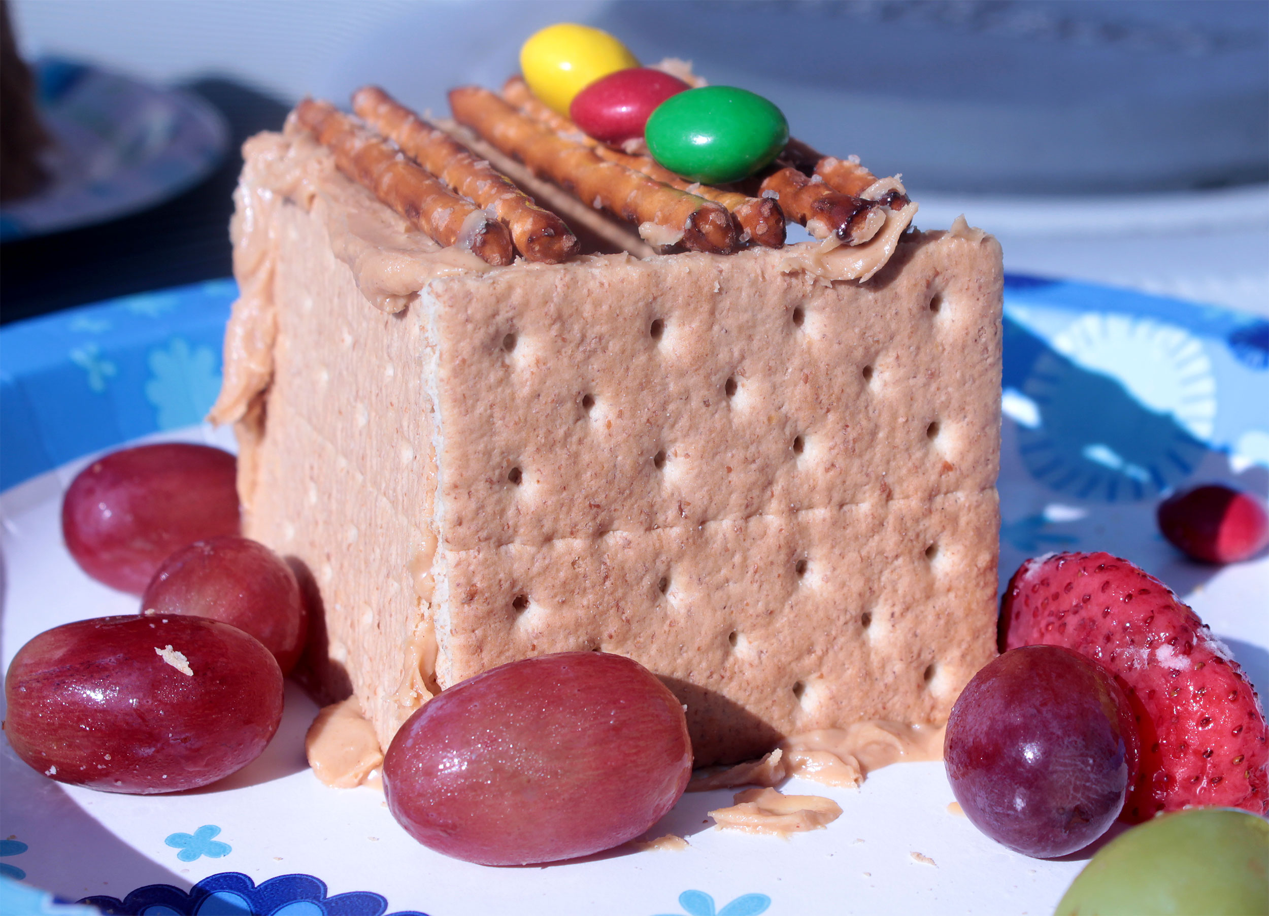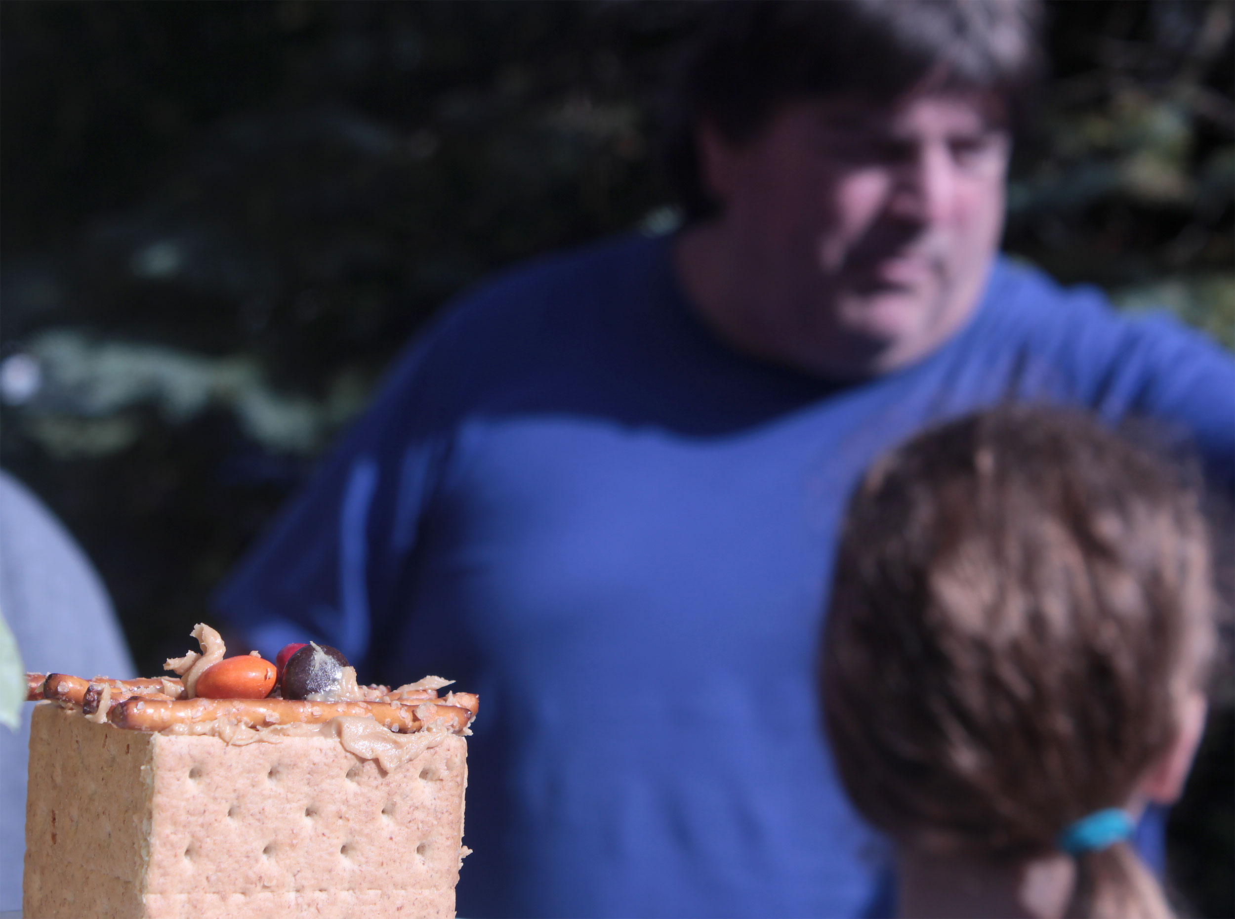 Students made mini-sukkahs with graham crackers, pretzel sticks and M&Ms, cemented with peanut butter.
