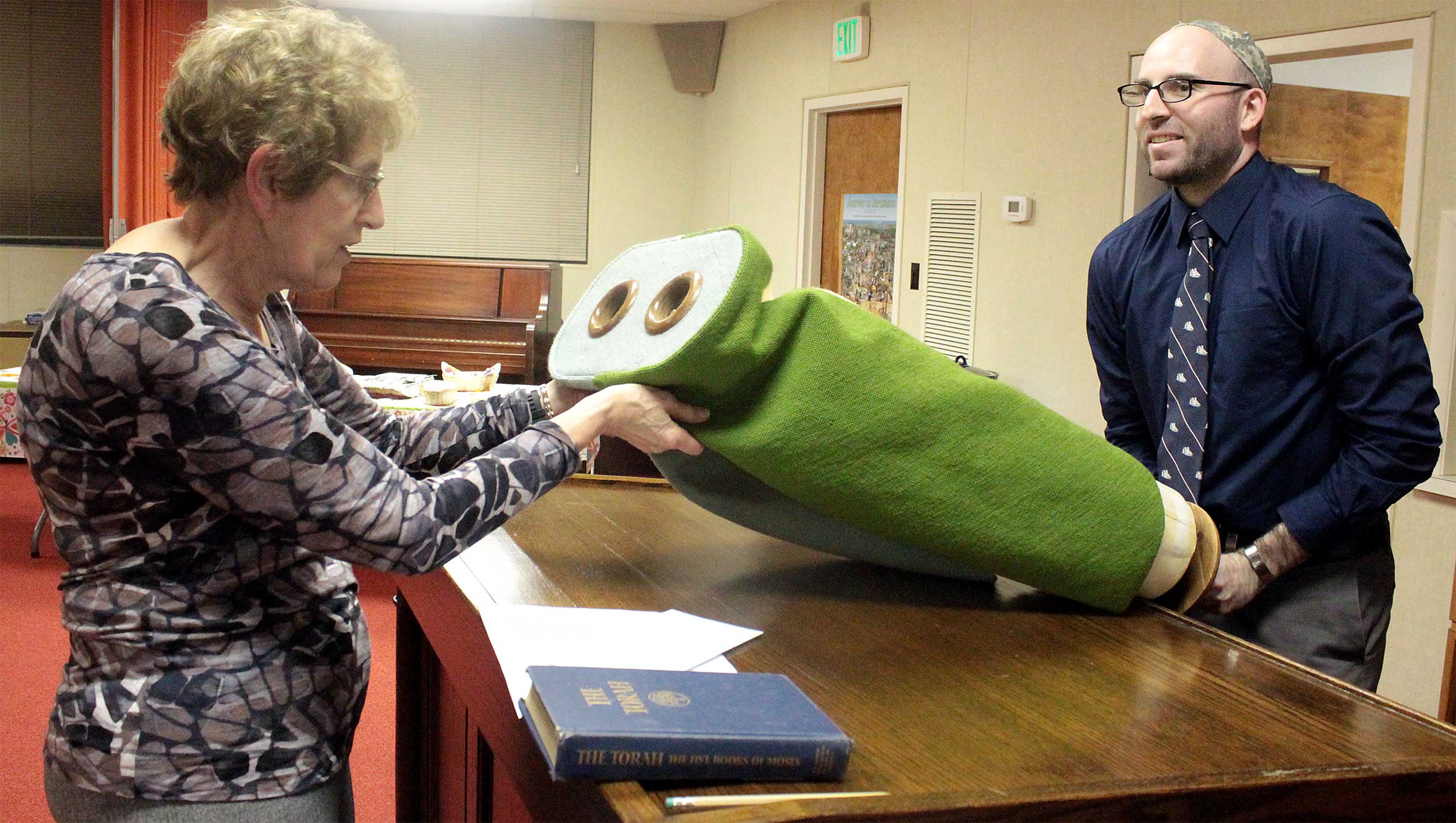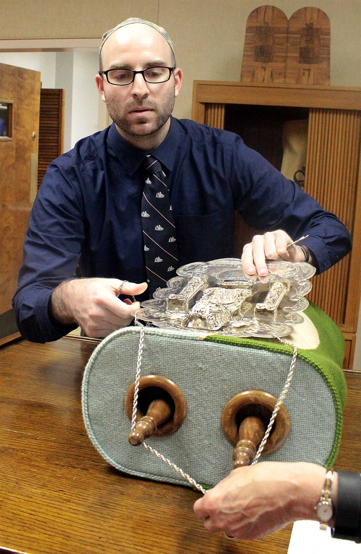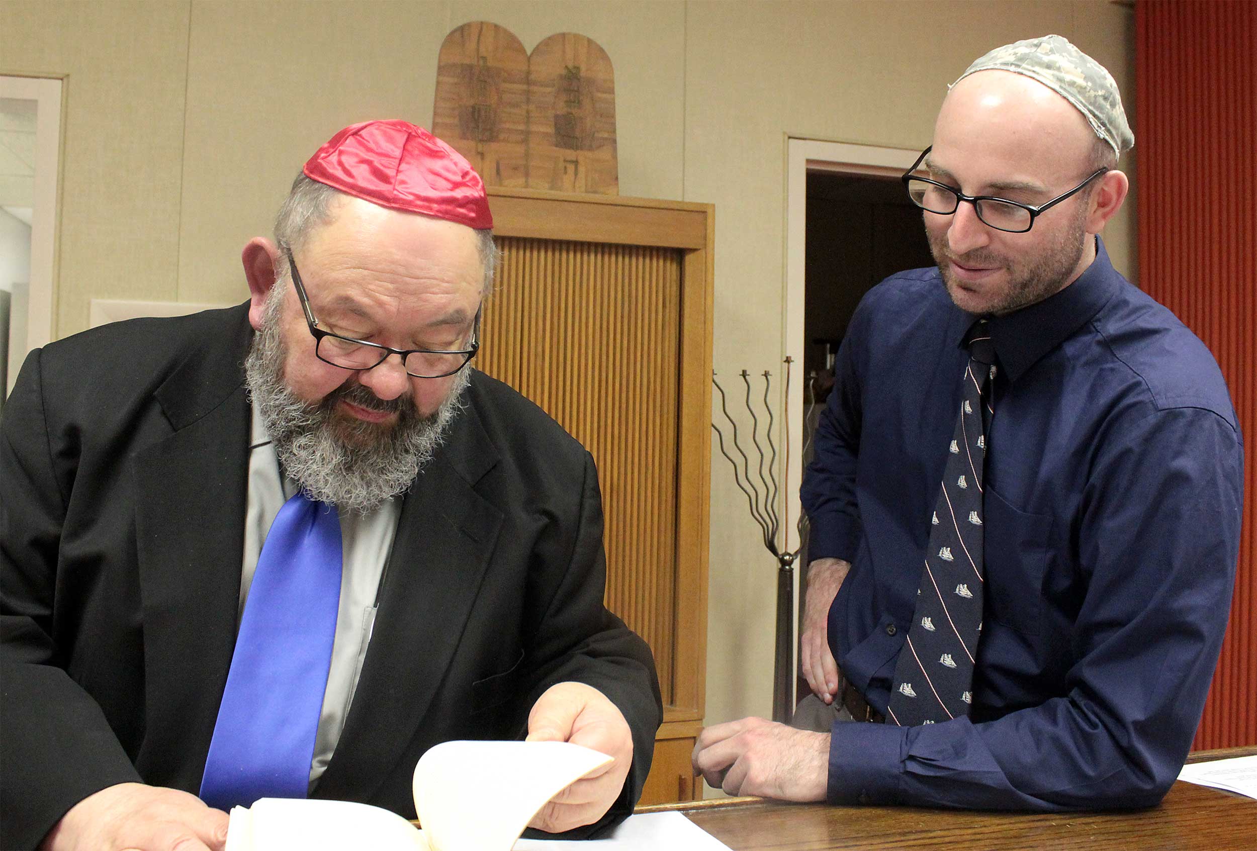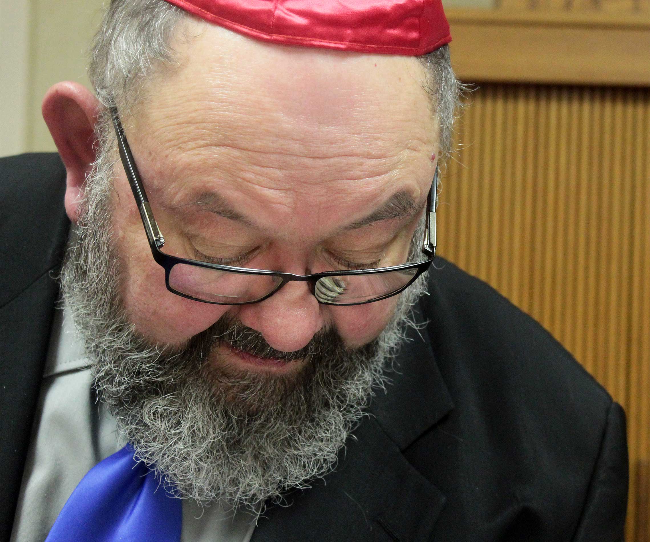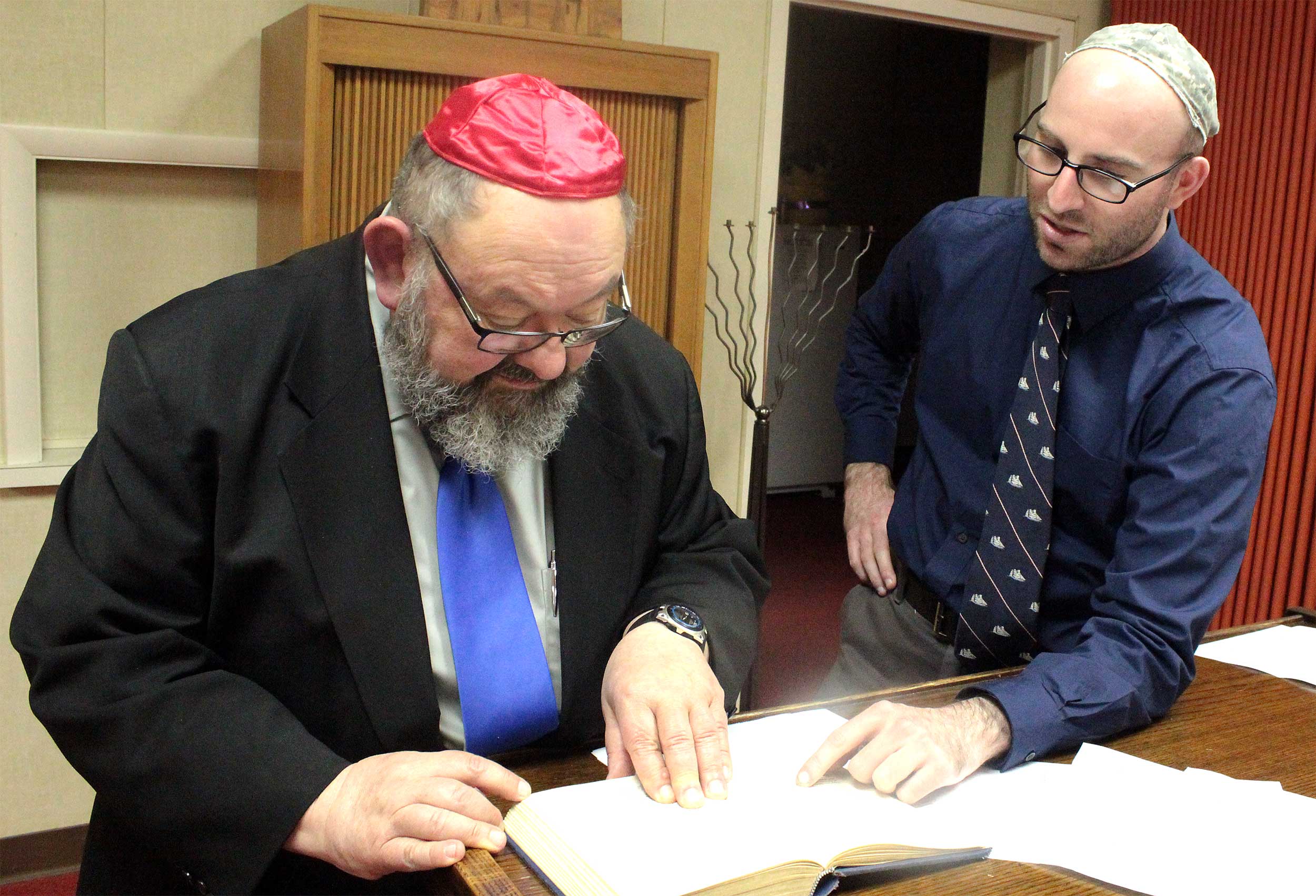 During a previous visit on Nov. 18, Rabbi Aaron prefaced Shabbat services by supervising a belated Simchat Torah celebration, as members unrolled the Torah to mark a new cycle of weekly readings.