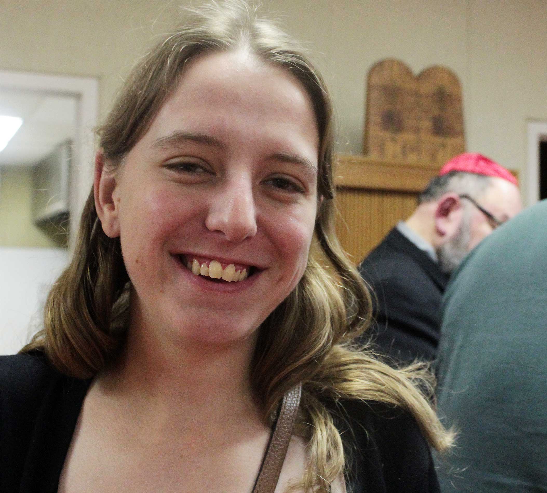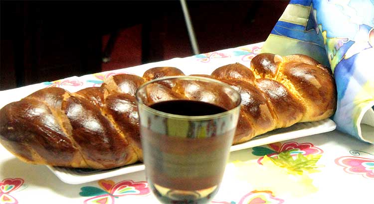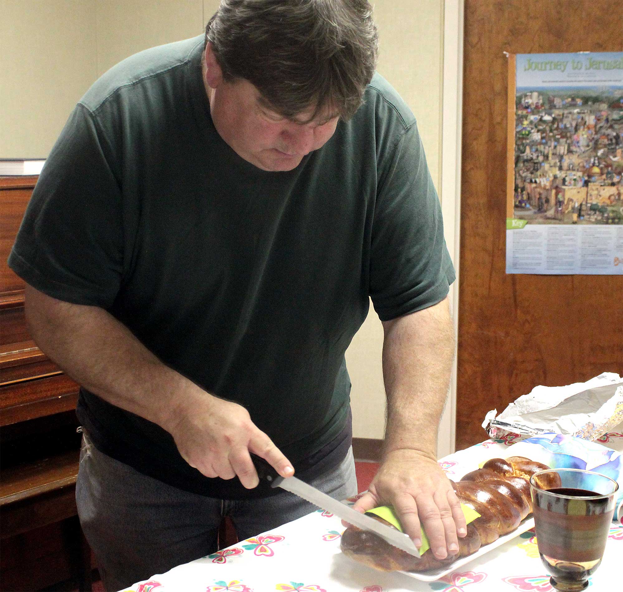 Student Rabbi Aaron Rozovsky led the kiddush and hamotzi following services on Dec. 9, before congregants and guests shared coffee, cake, quiche and good wishes.