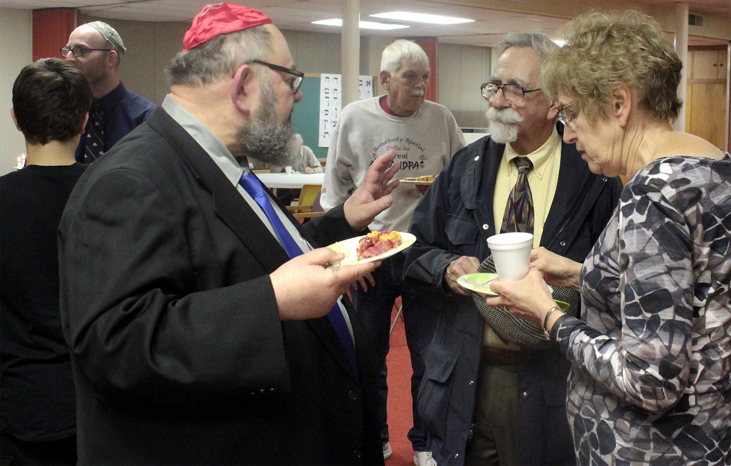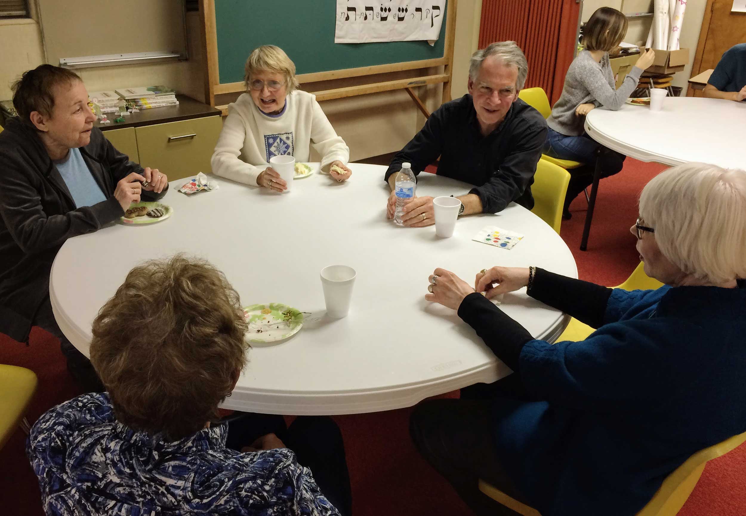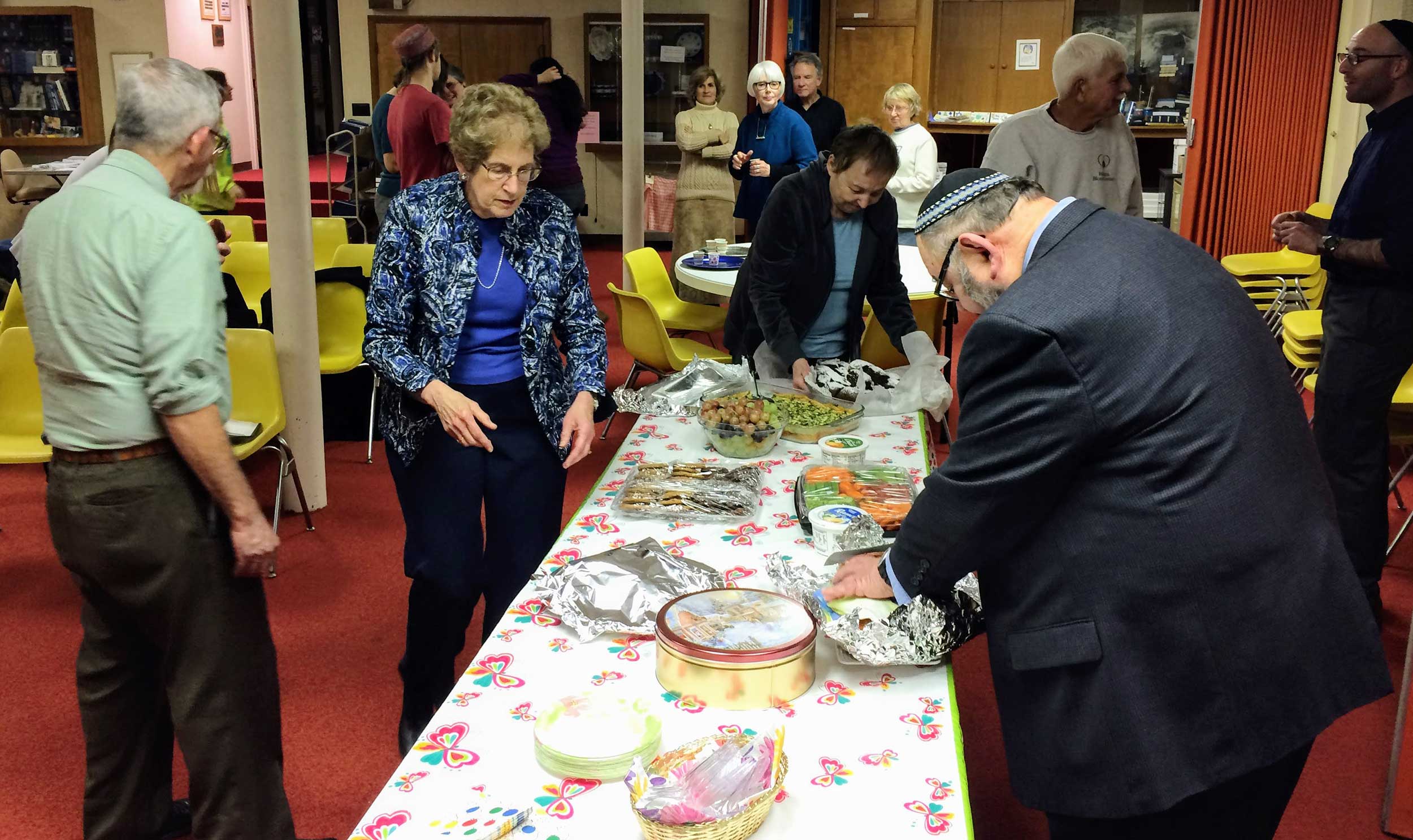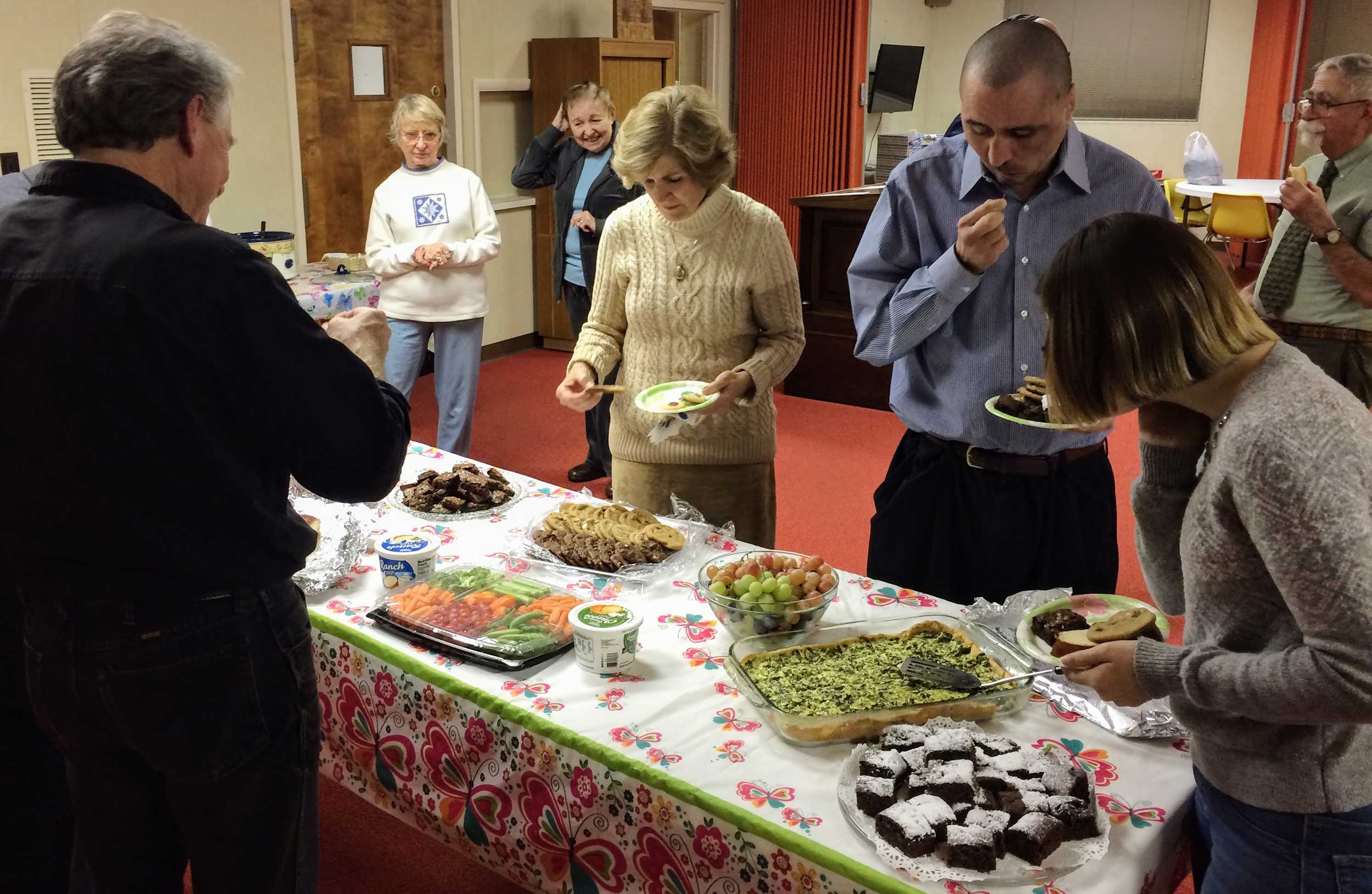 At United Hebrew Congregation Terre Haute, Sisterhood-sponsored onegs remain a warm feature of Friday night Shabbat services.