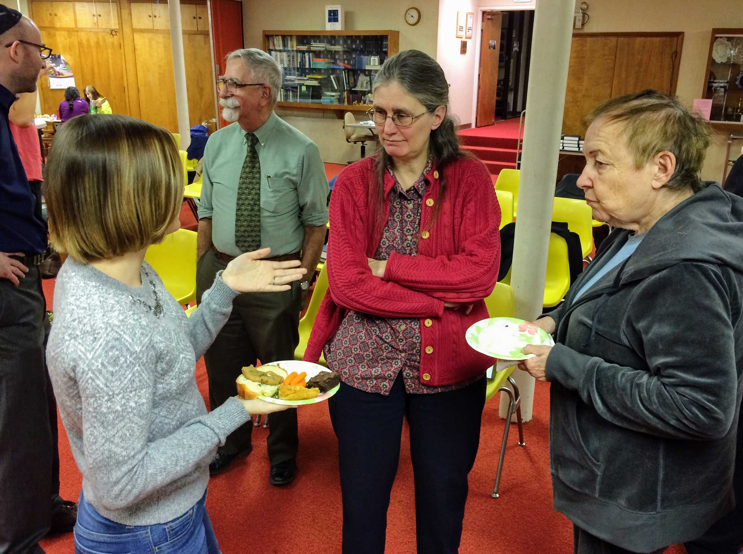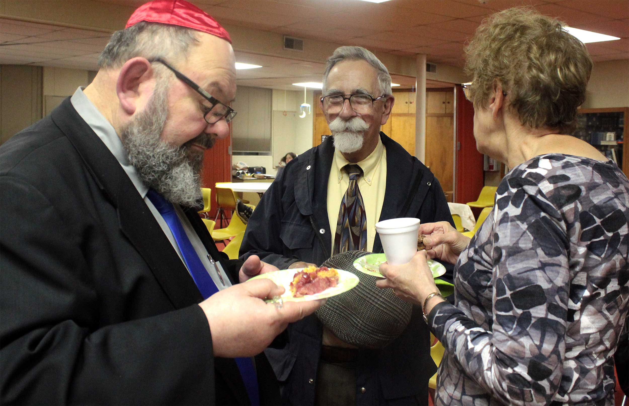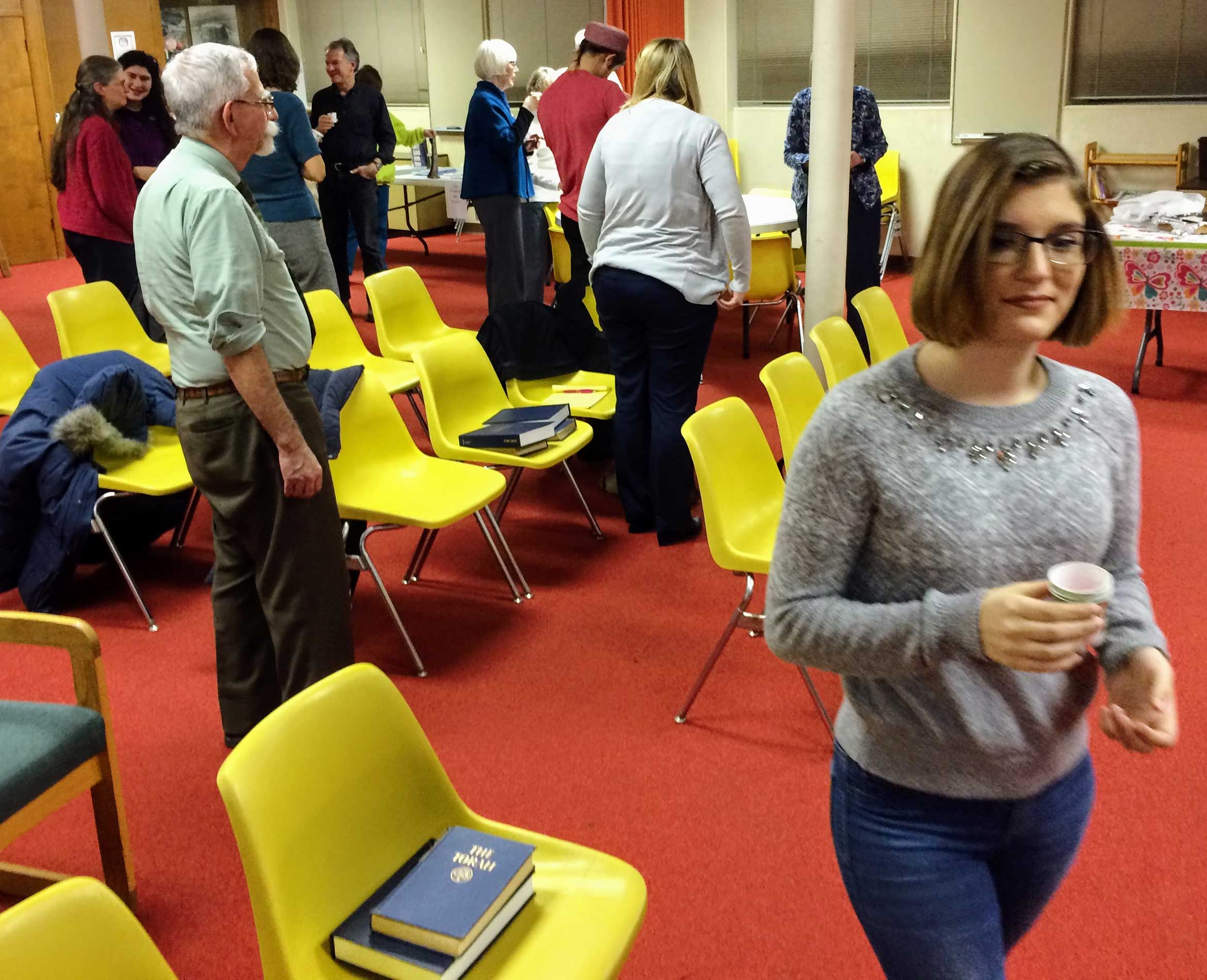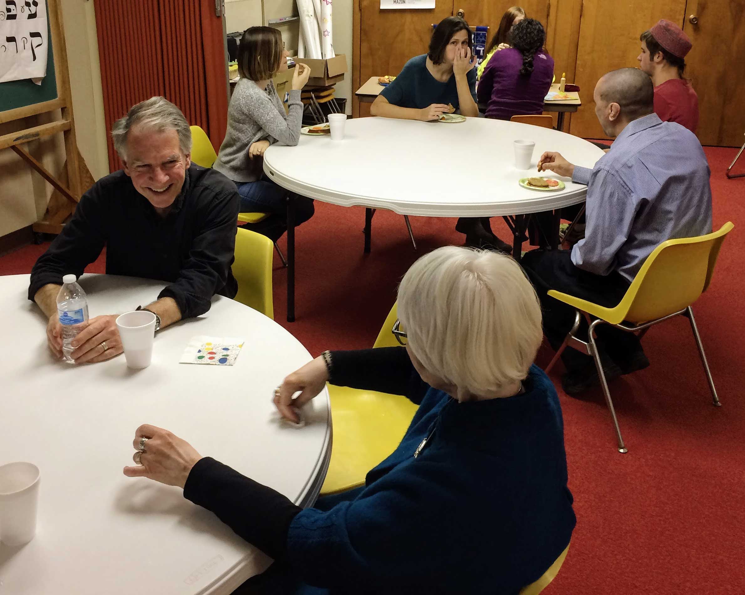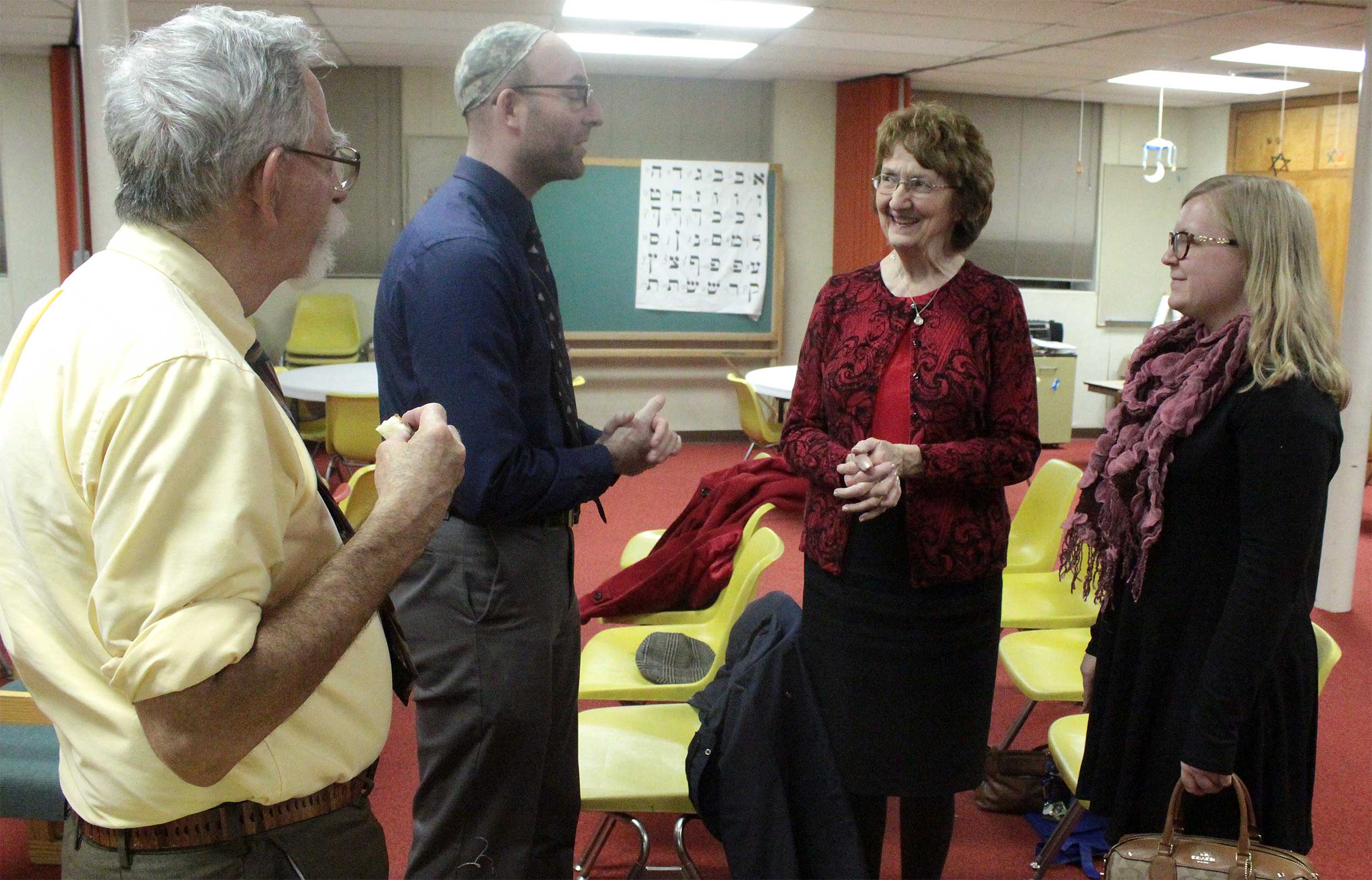At United Hebrew Congregation Terre Haute, Sisterhood-sponsored onegs remain a warm feature of Friday night Shabbat services.