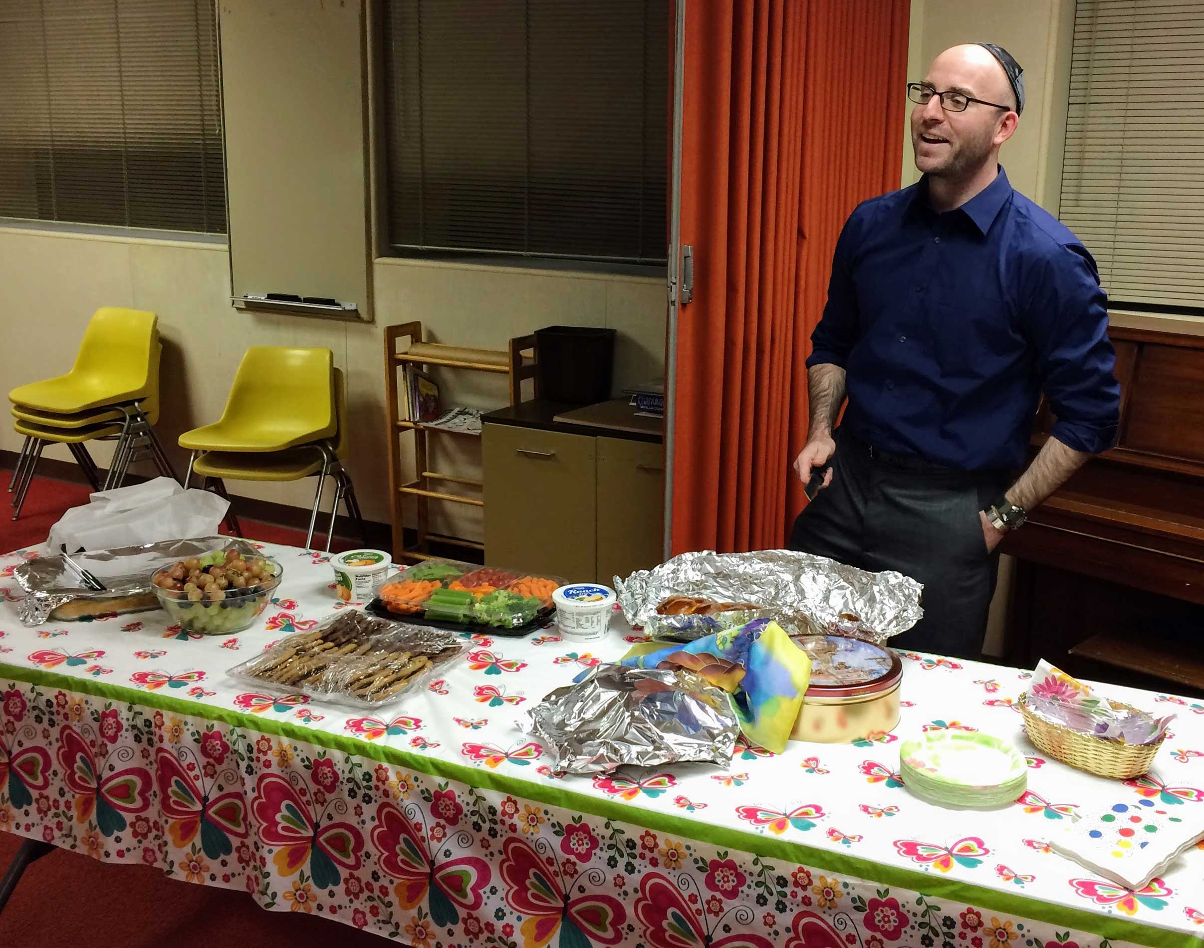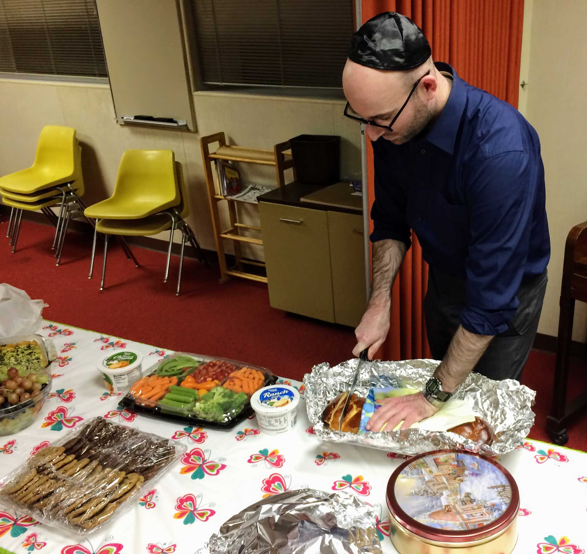 A celebratory oneg followed. Scott Skillman cut the challah.