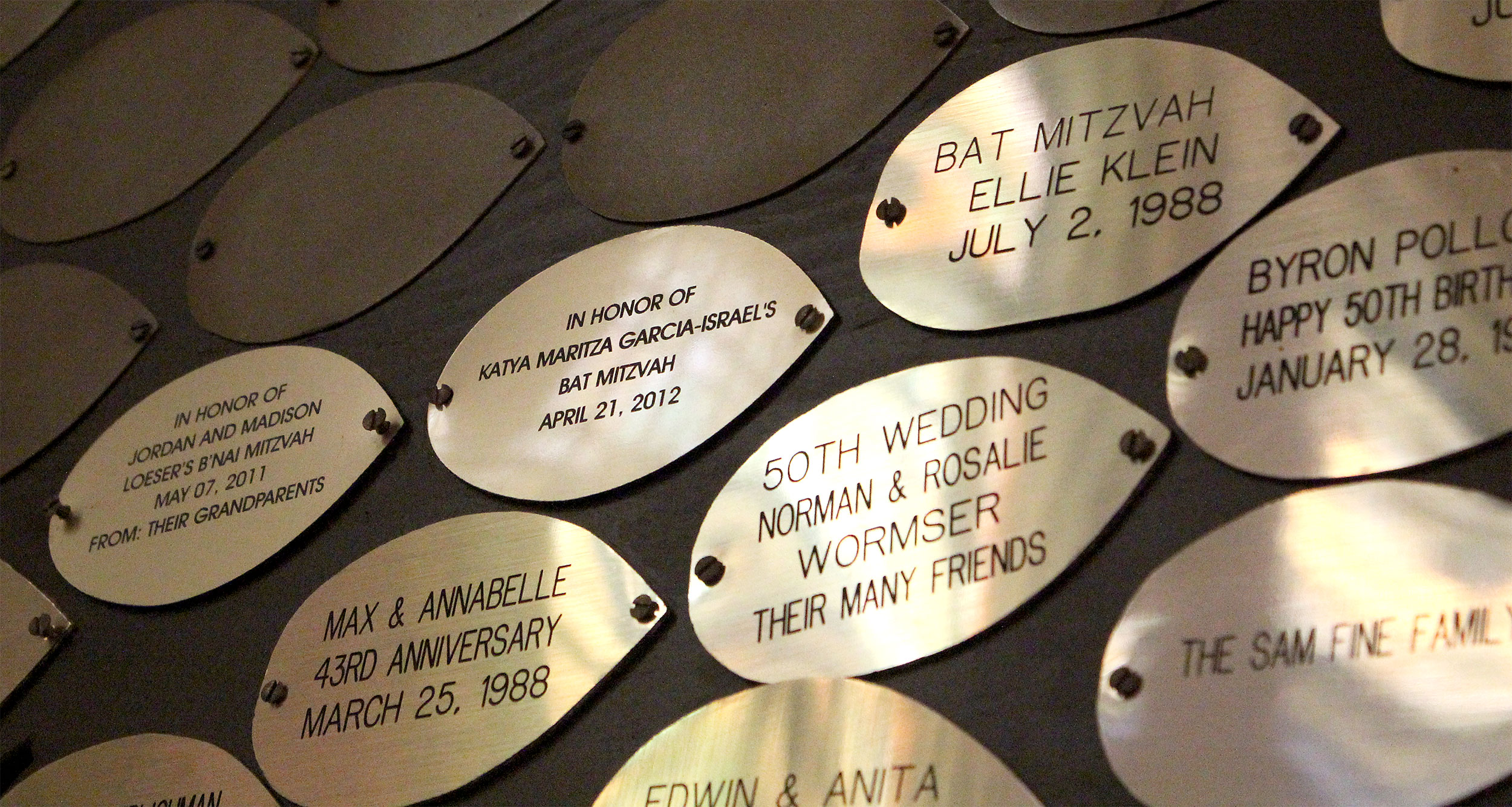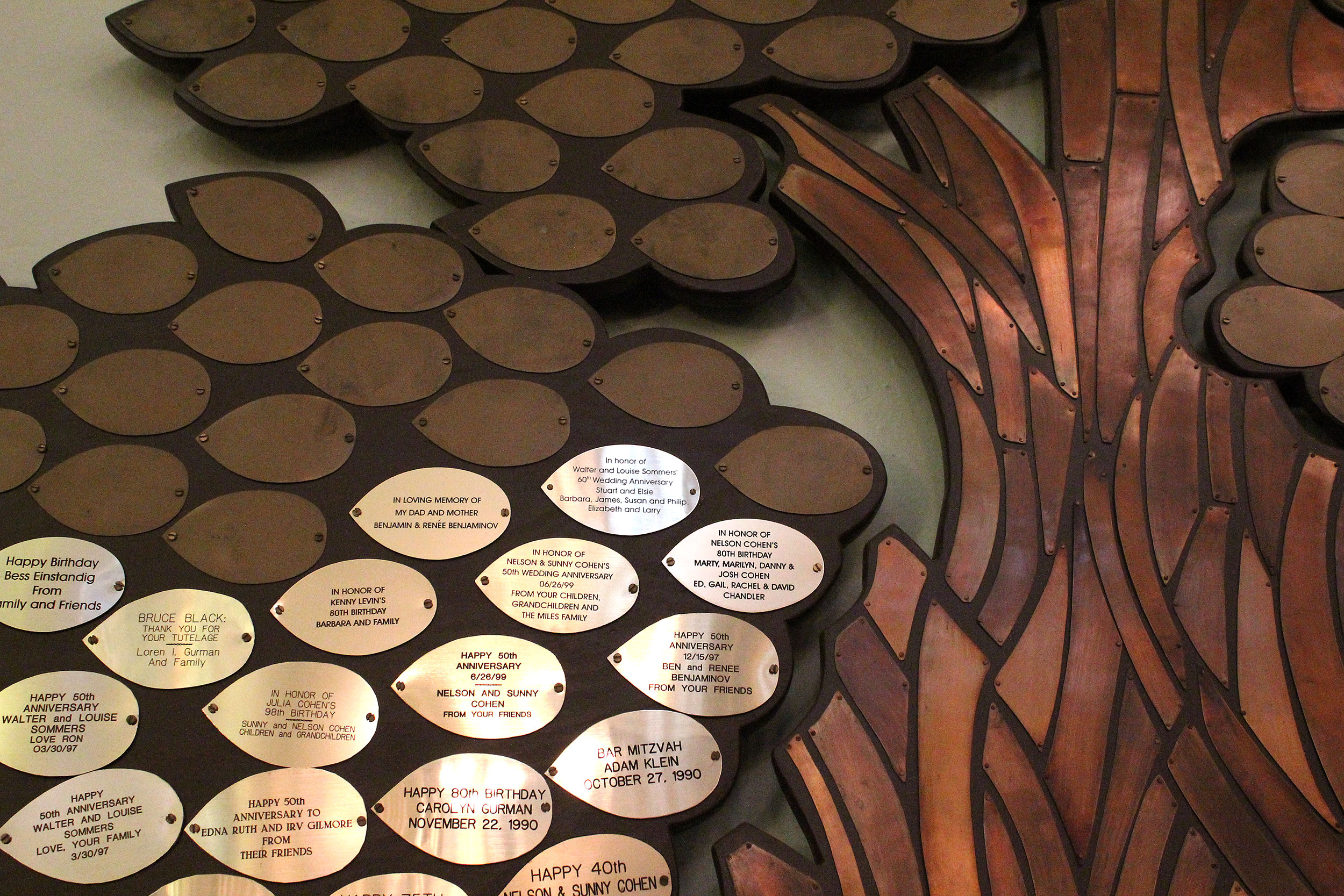 Below the Tree of Life you can read from the Etz Chaim dedication, “…as a symbol, each leaf of our tree is a permanent expression of the dedication of its donor, each inscription another event in our lives.